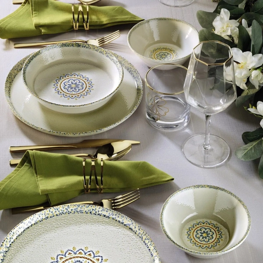 12-osainen ruokailusarja, vihreä/posliini | Alasans