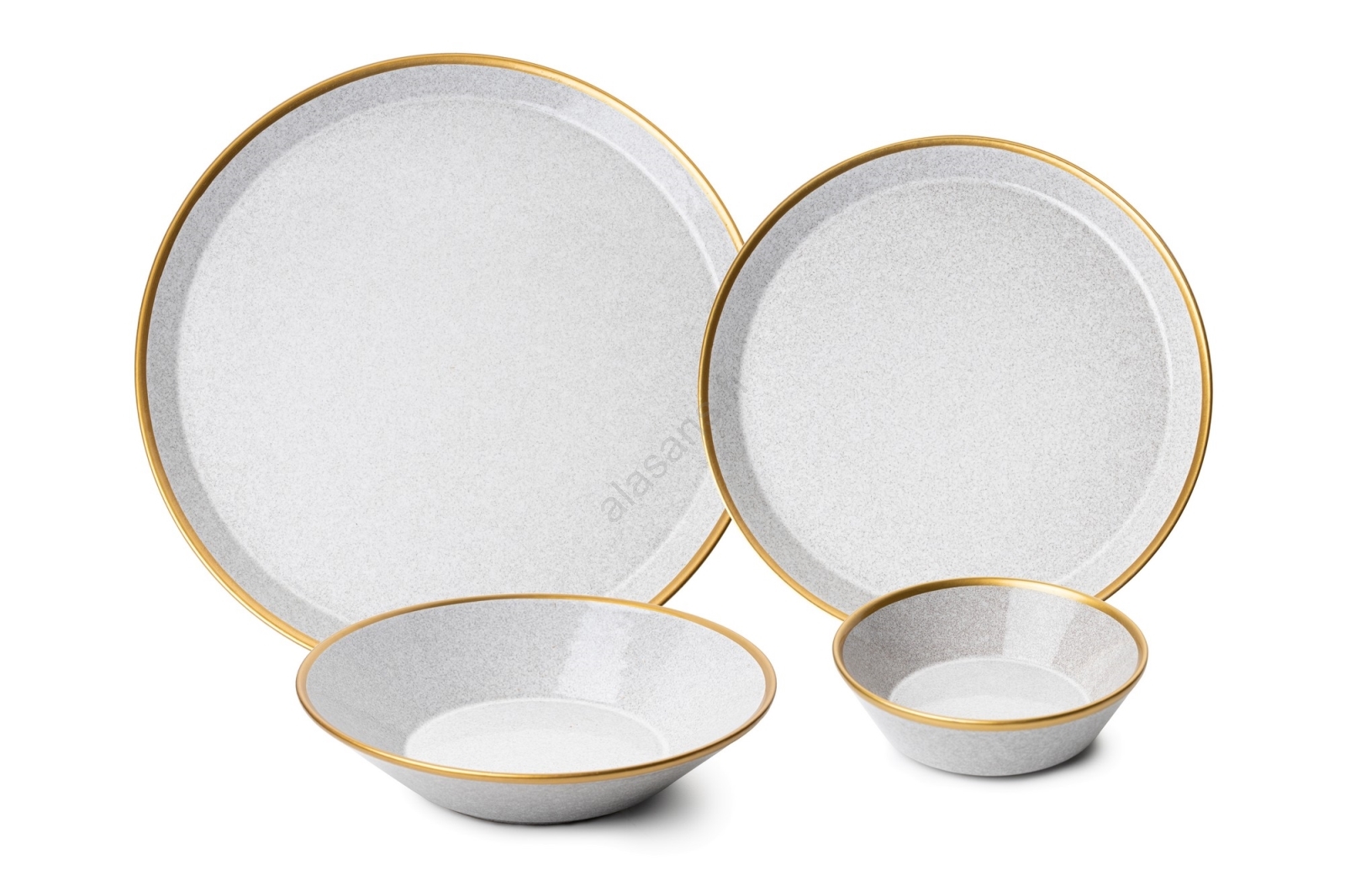 16-osainen posliininen ruokasarja, harmaa/kultainen | Alasans