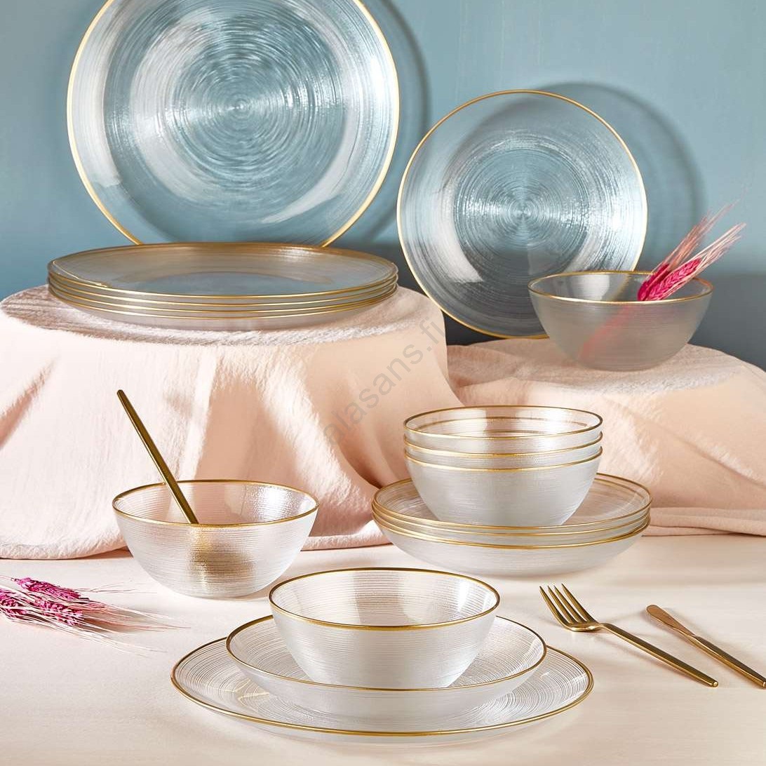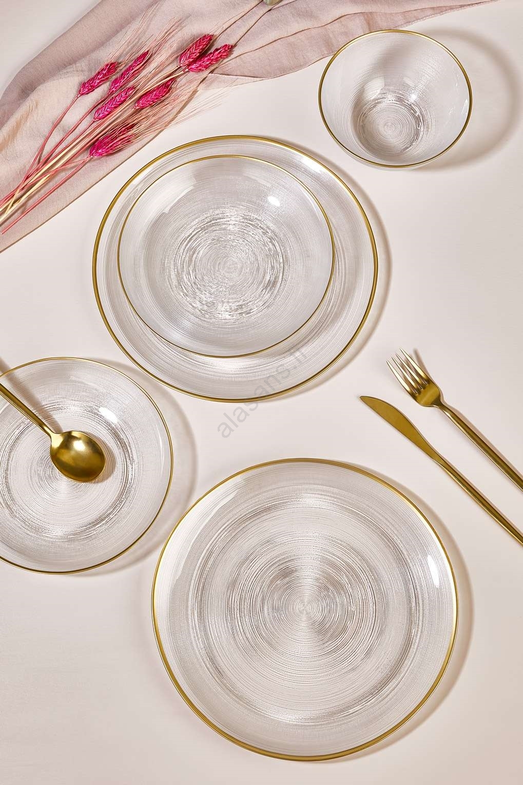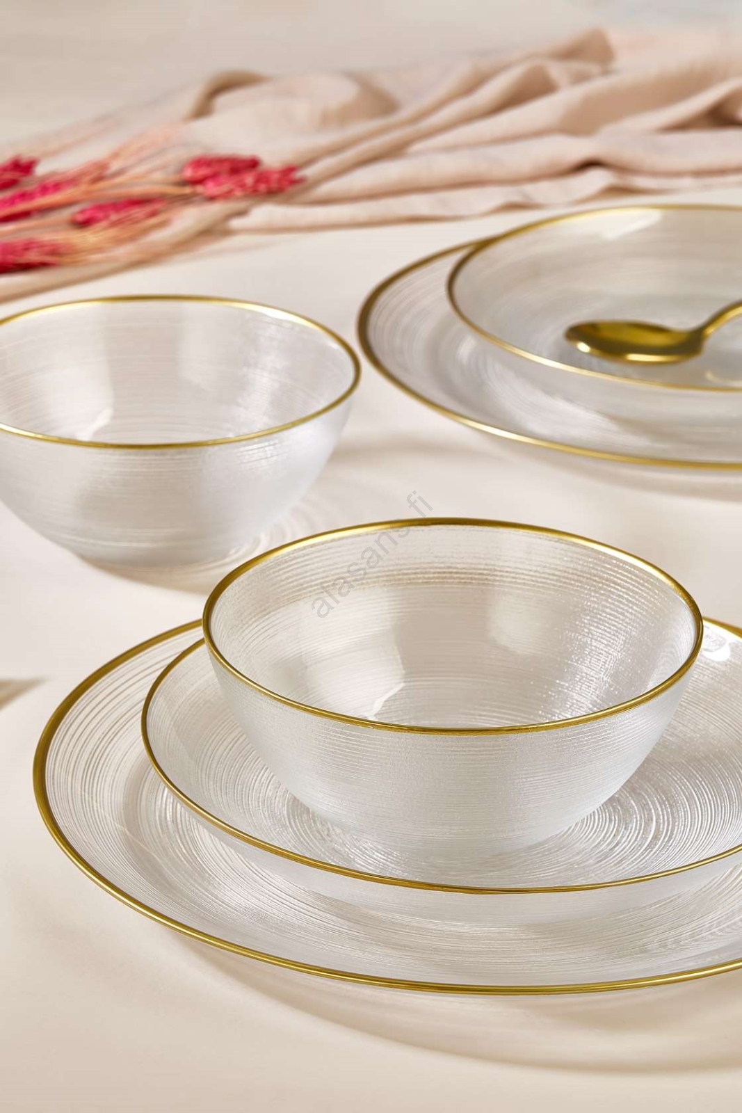 18-osainen astiasto kirkas/kultainen/lasi | Alasans