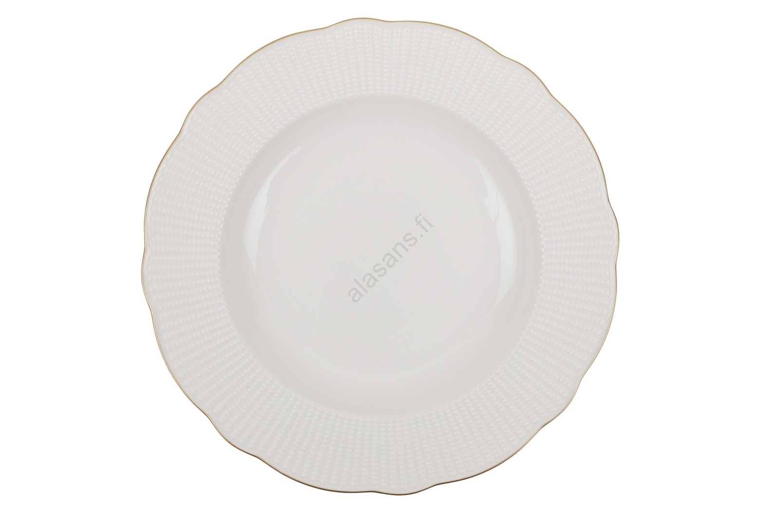 18-osainen astiasto, valkoinen/kultainen/posliini | Alasans