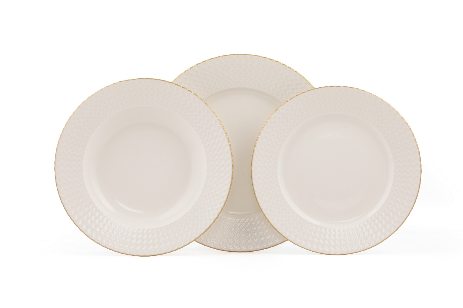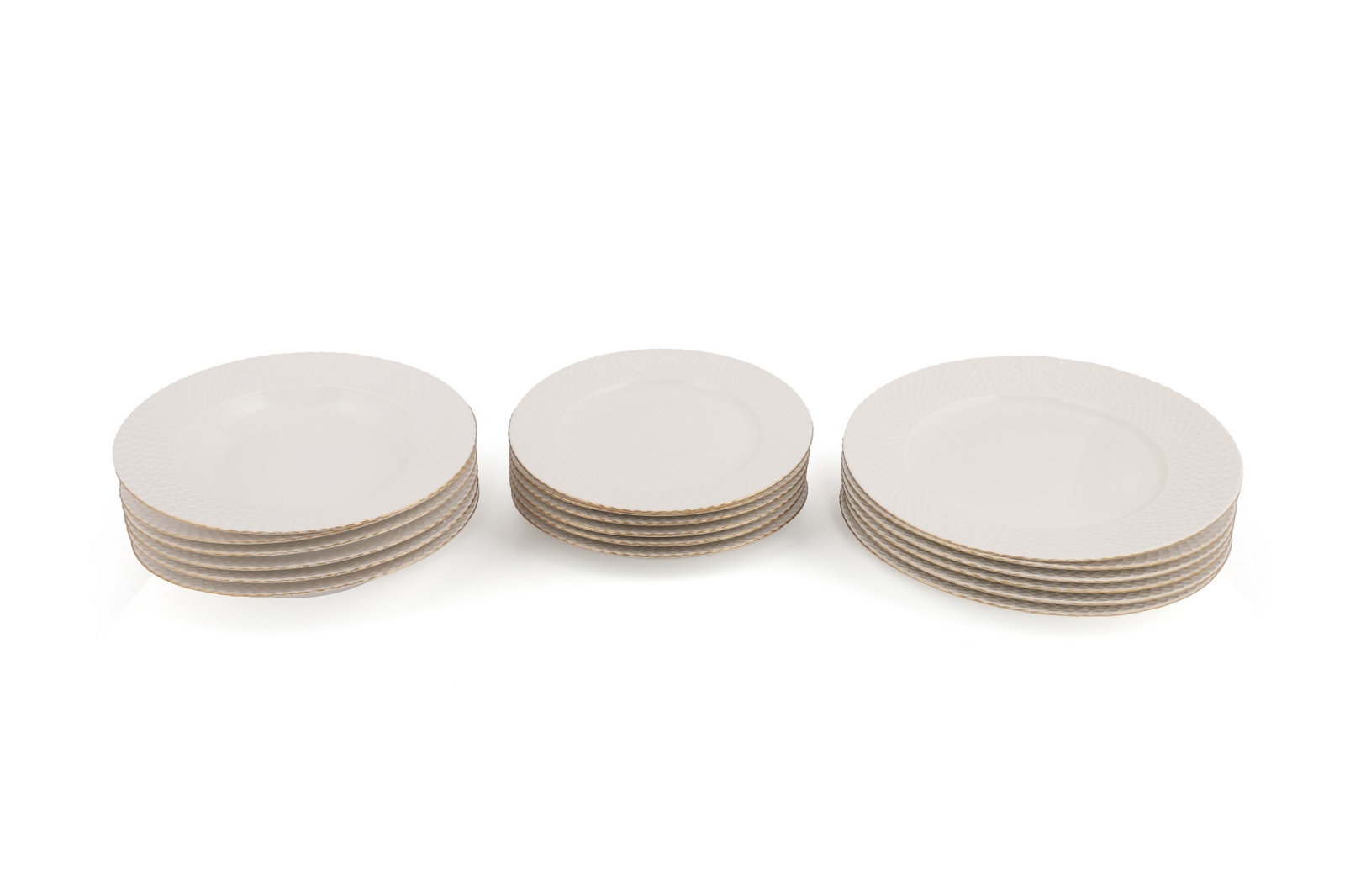 18-osainen posliininen ruokailusetti, valkoinen/kultainen | Alasans