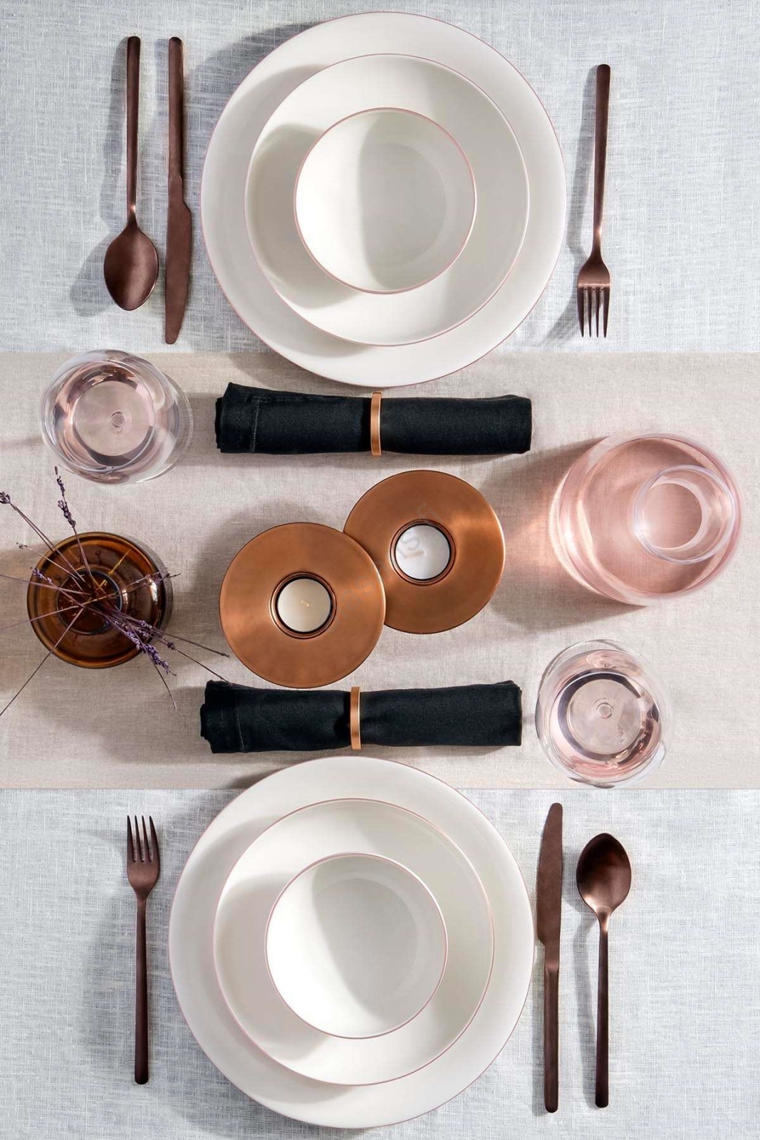 18-osainen ruokailusetti, valkoinen/kupari/posliini
