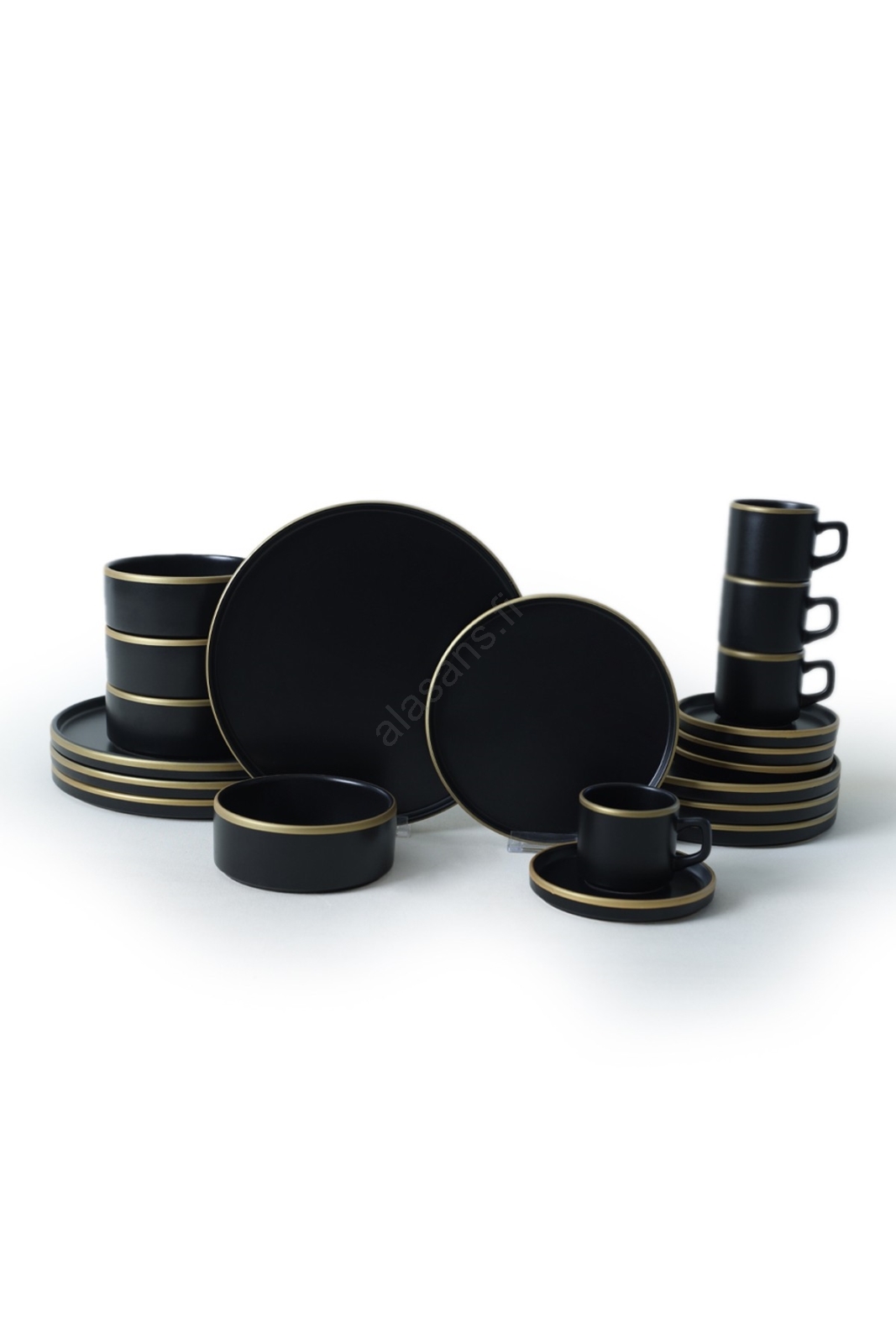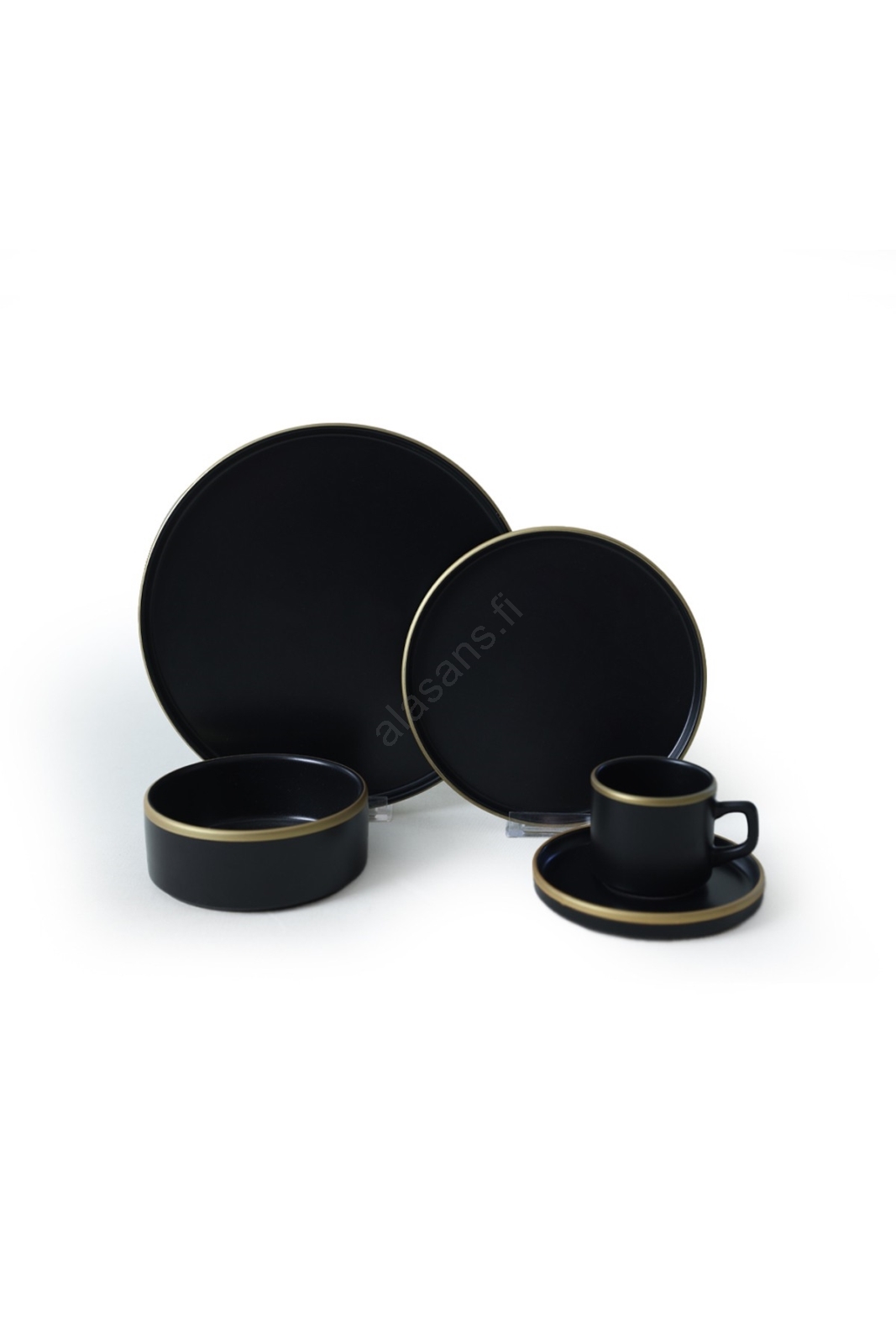 20-osainen keraaminen ruokailusetti, musta/kultainen | Alasans