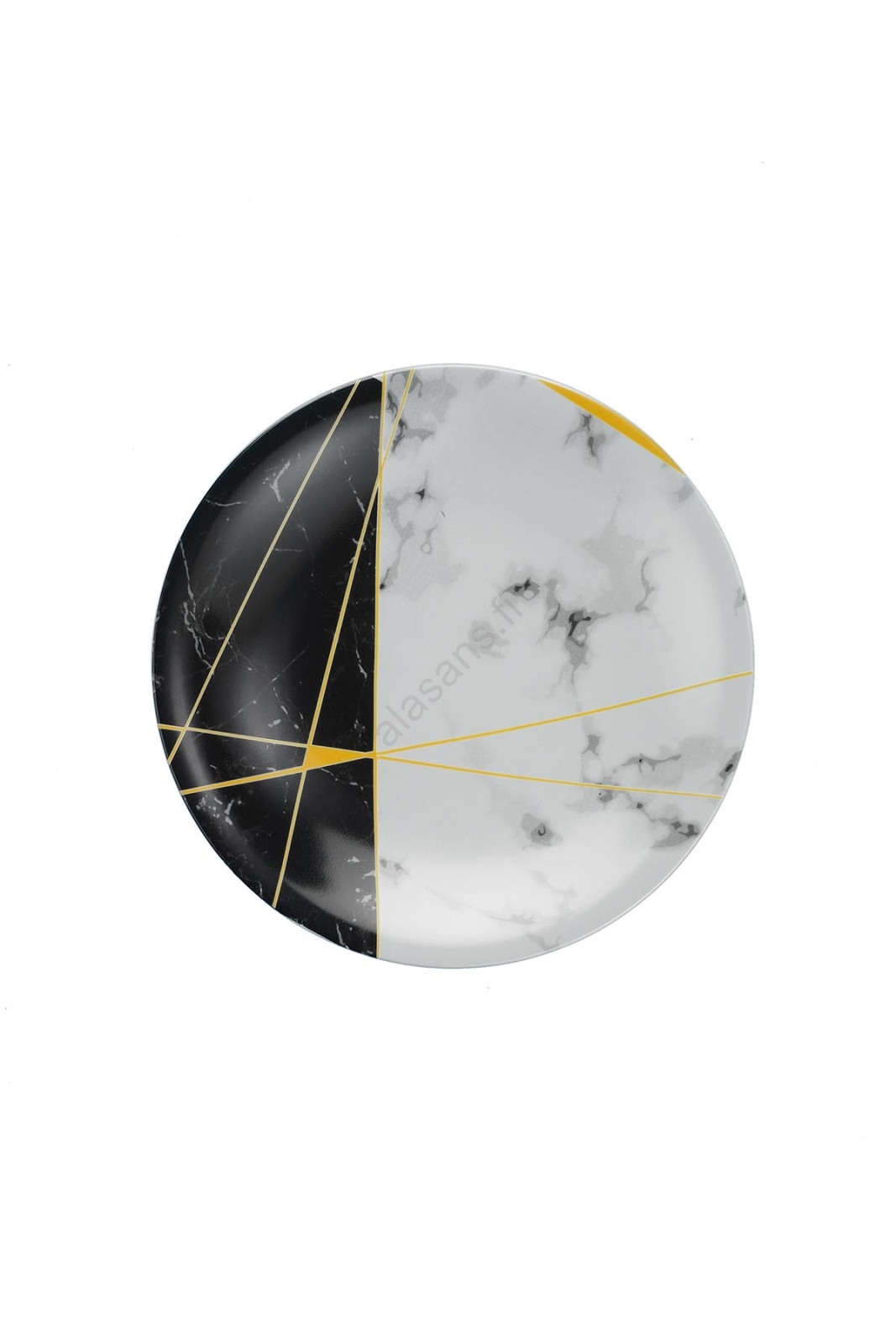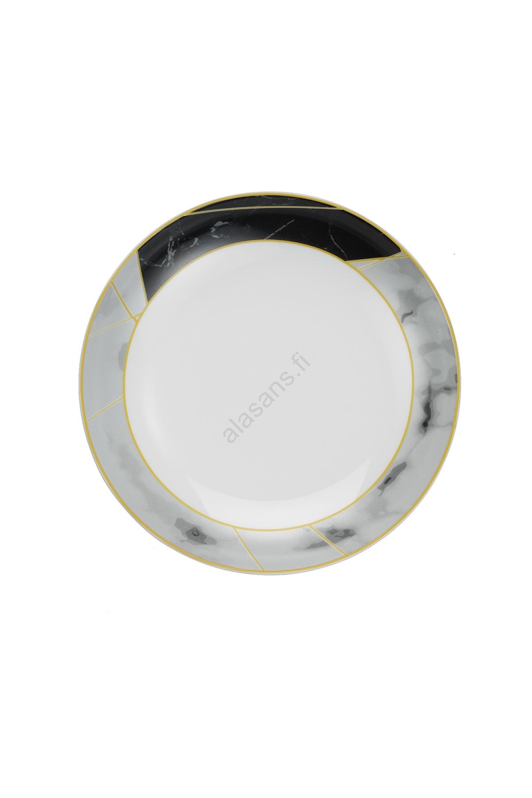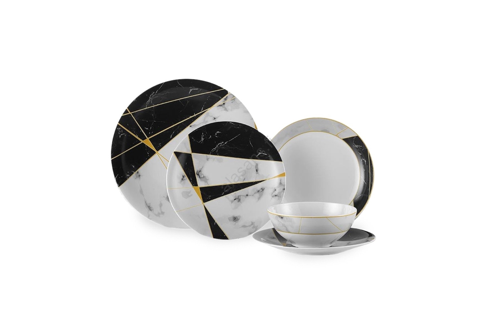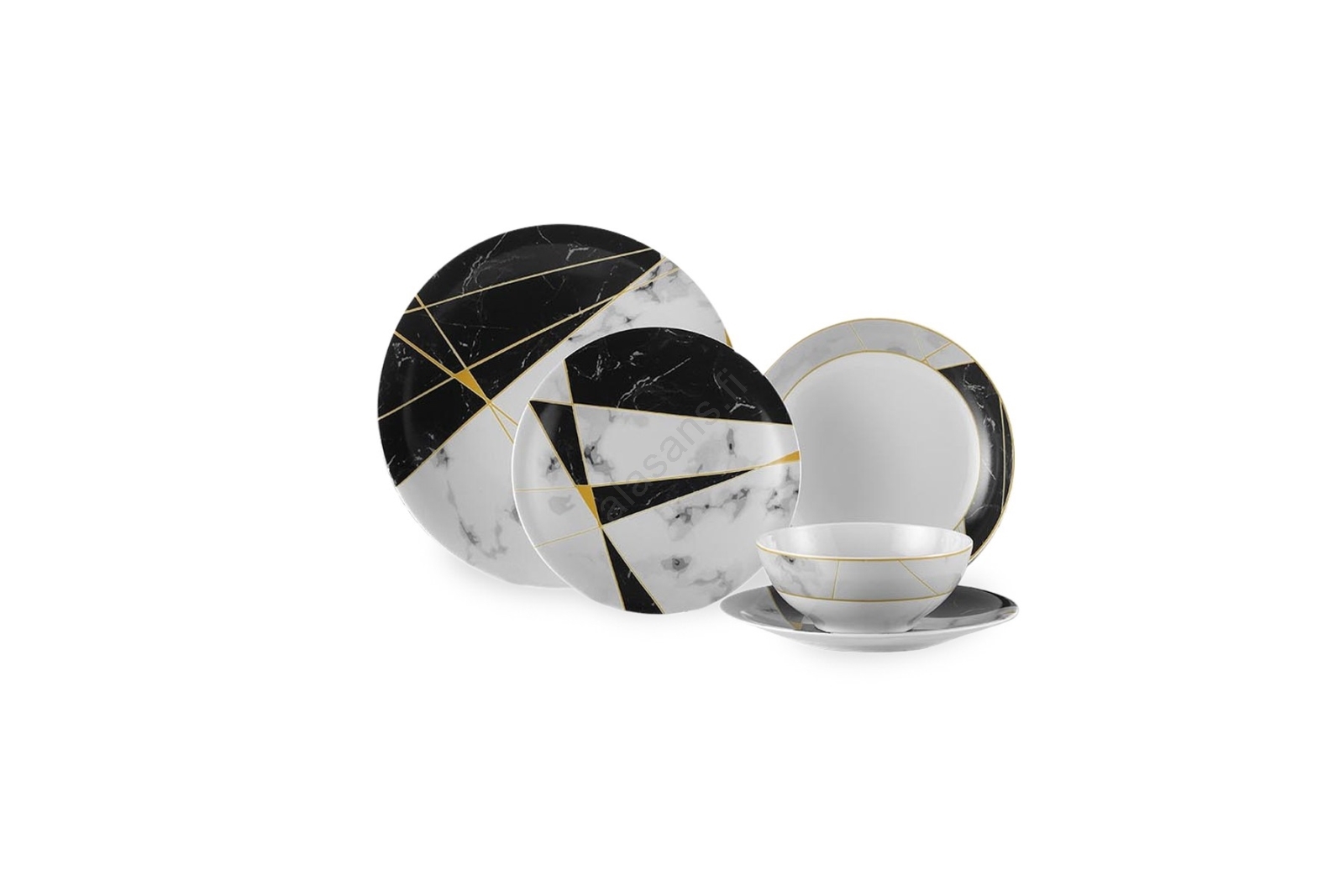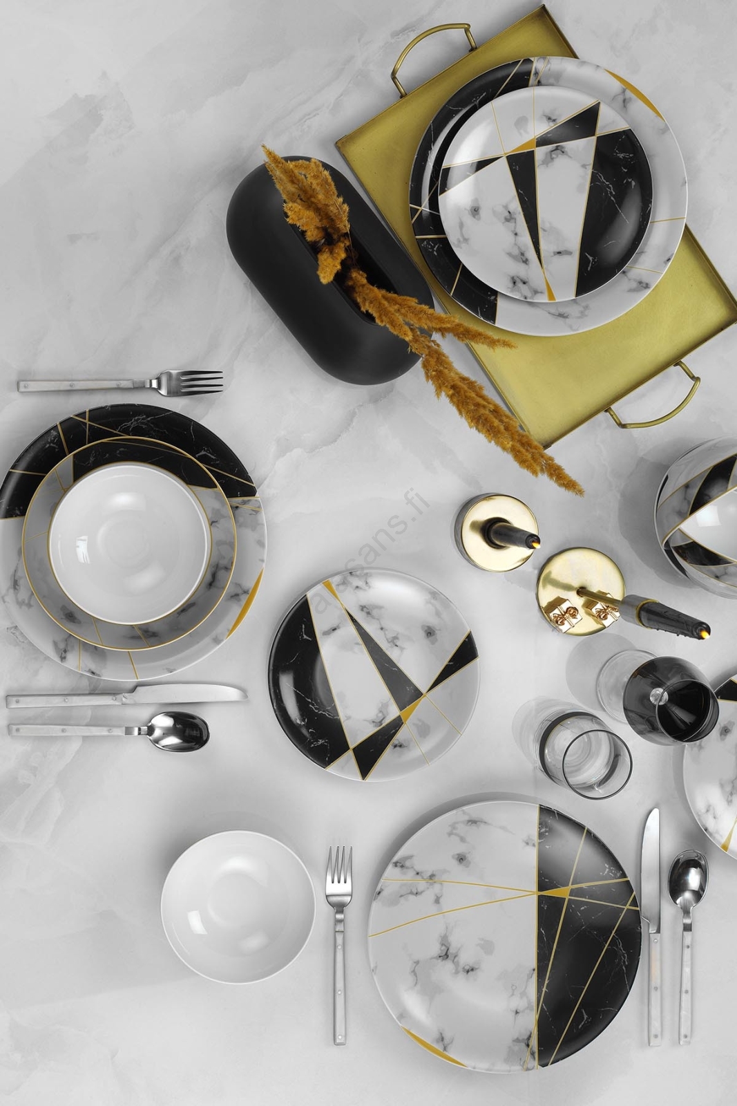24-osainen astiasto musta/valkoinen/kultainen/posliini | Alasans