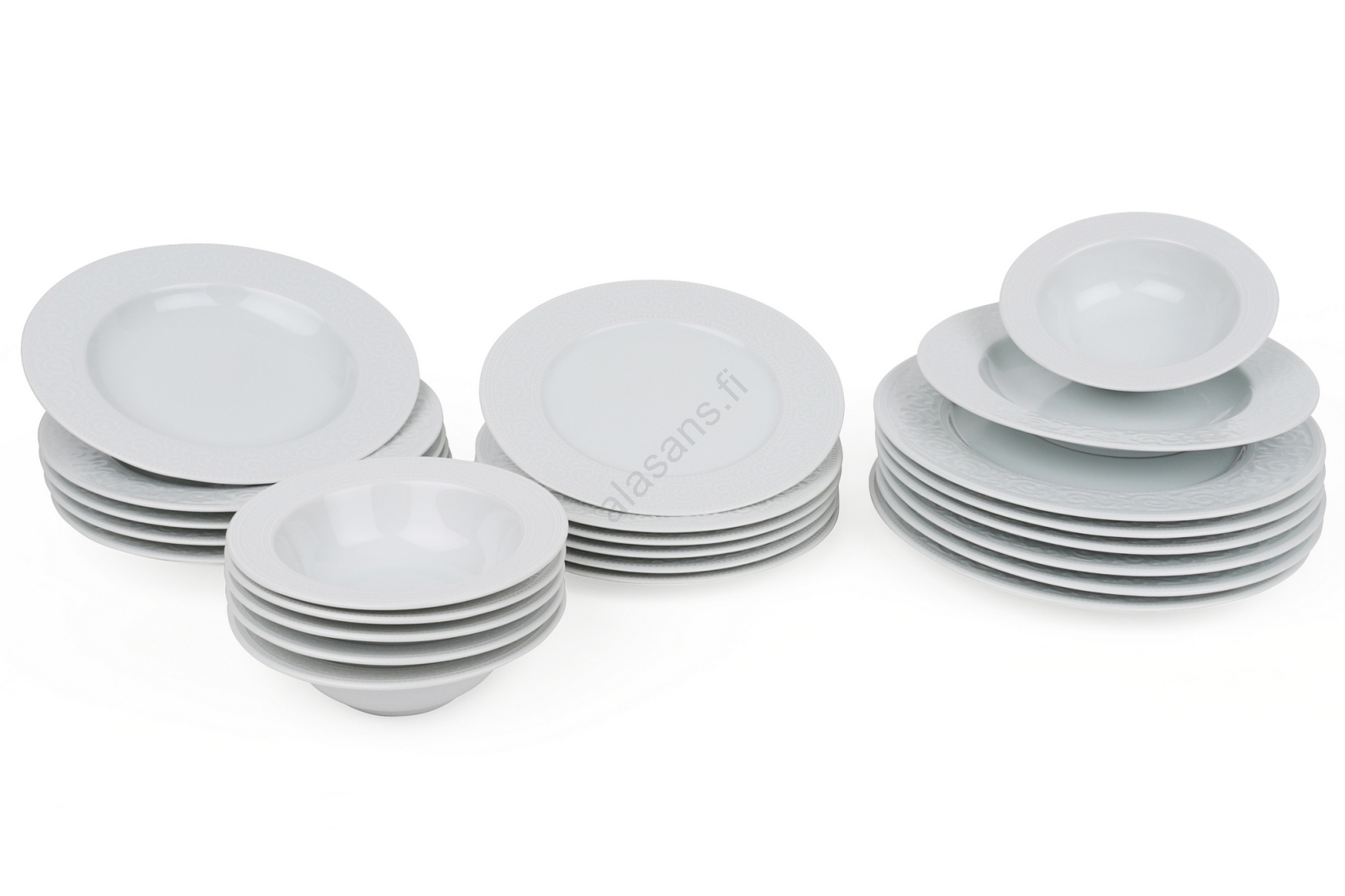 24-osainen astiasto, valkoinen/posliini | Alasans
