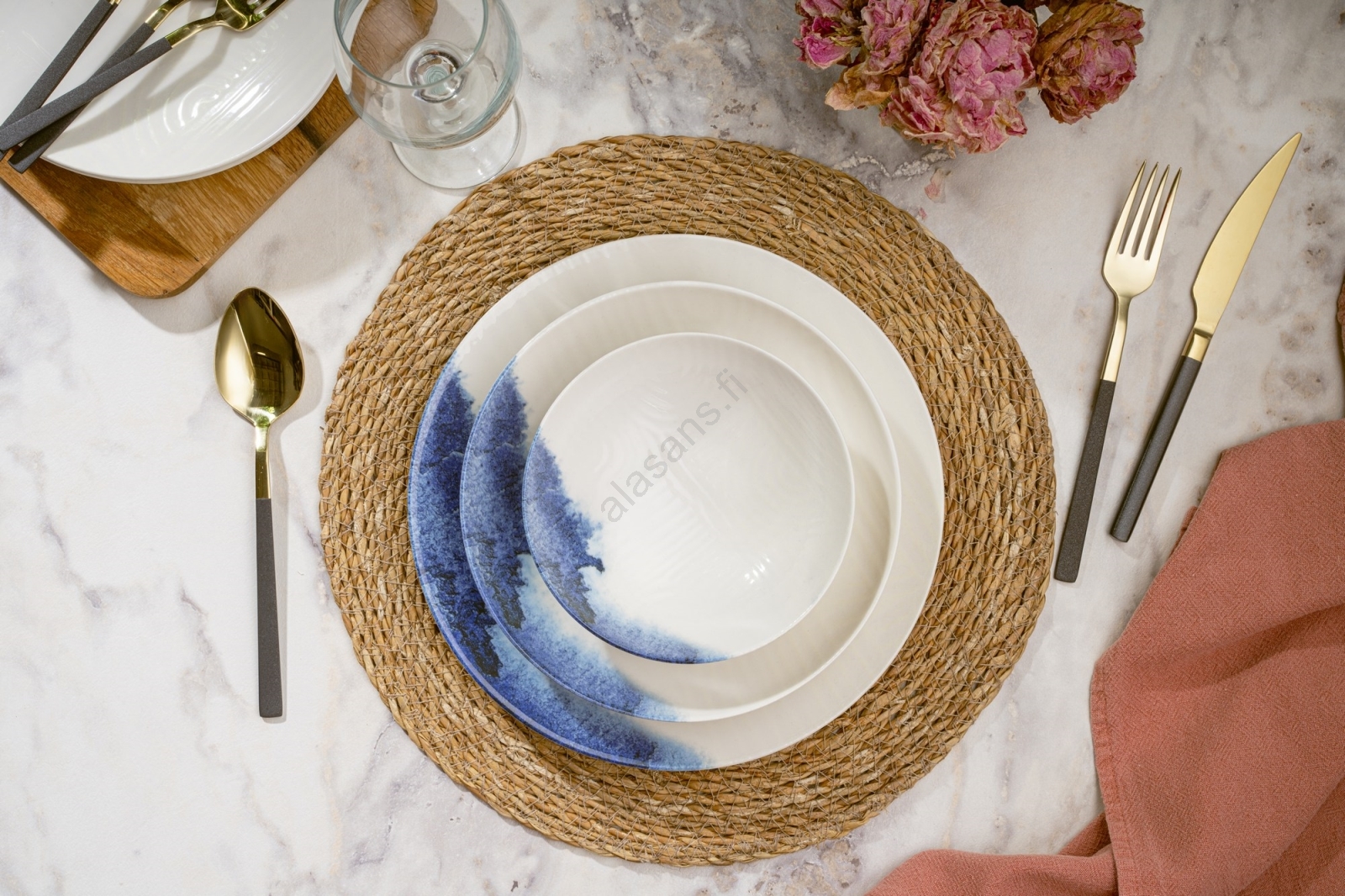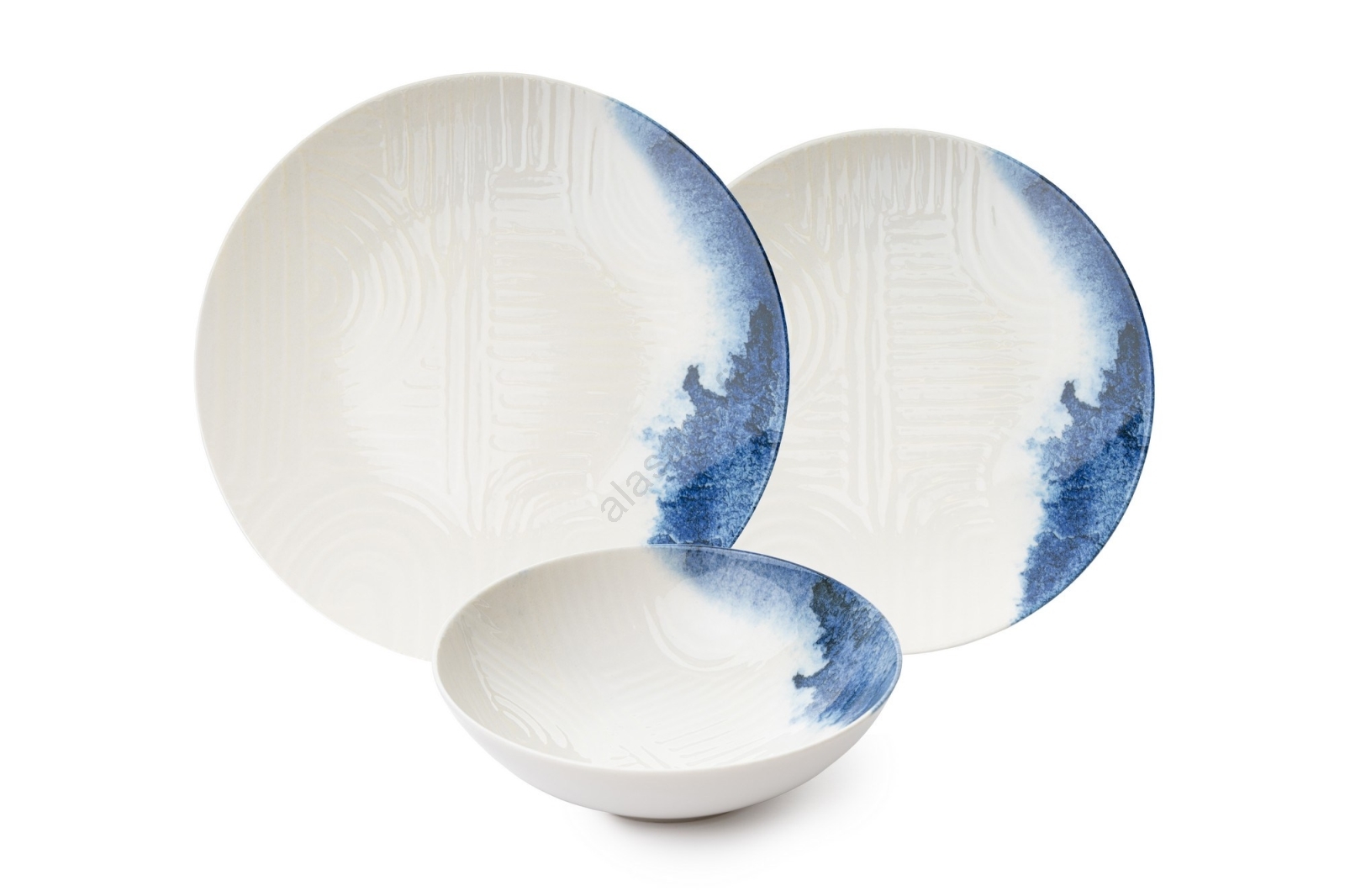 24-osainen astiasto valkoinen/sininen/posliini | Alasans
