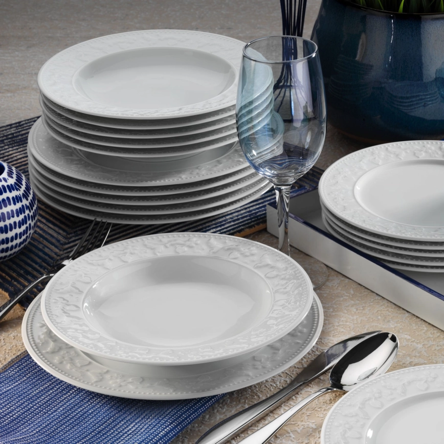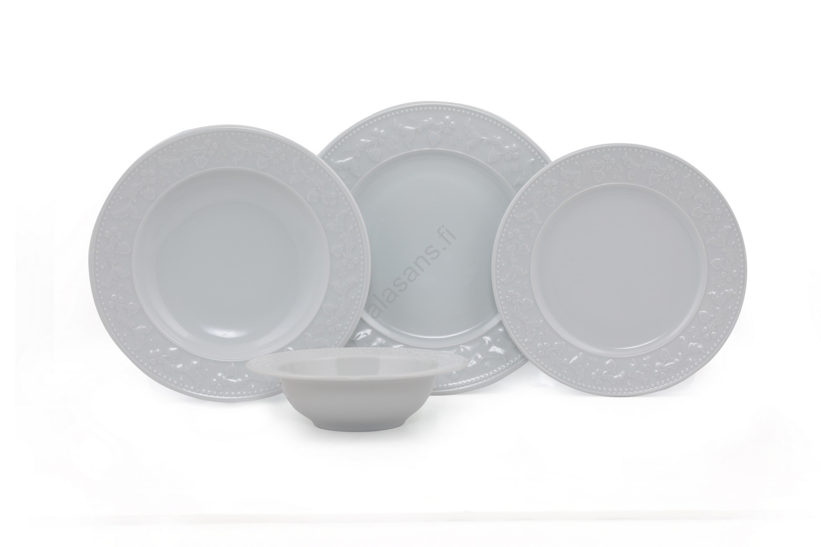 24-osainen posliininen ruokailusarja, valkoinen | Alasans