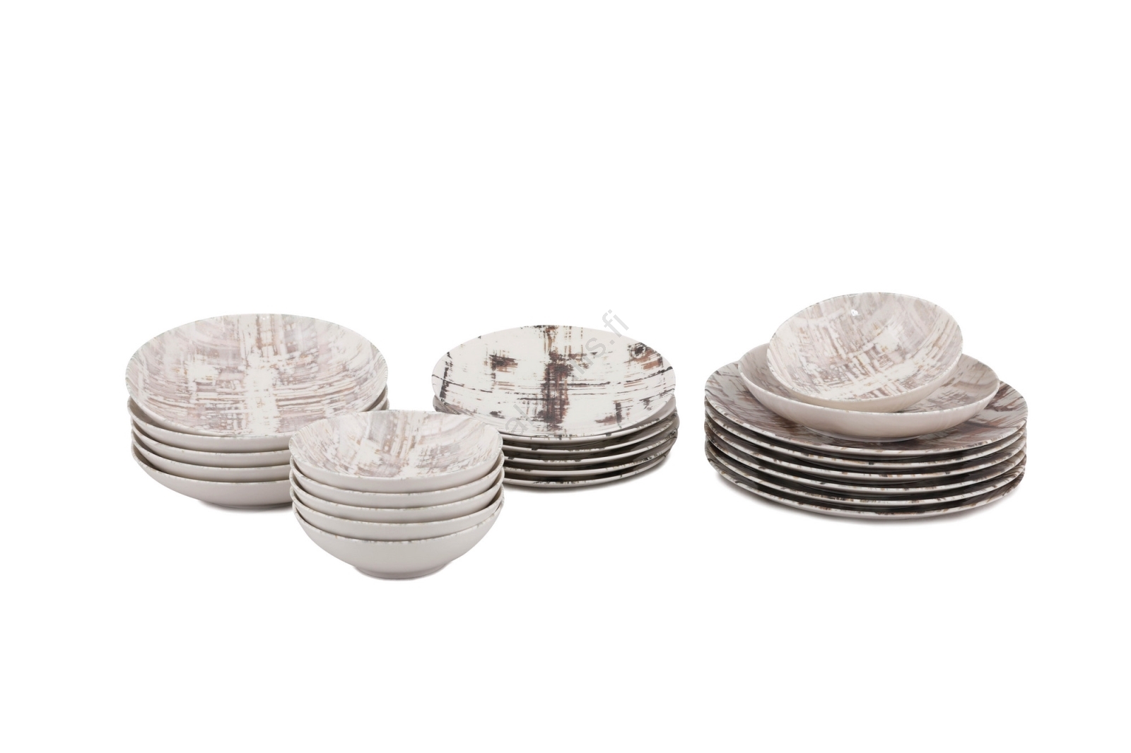 24-osainen posliininen ruokailusetti, ruskea/valkoinen