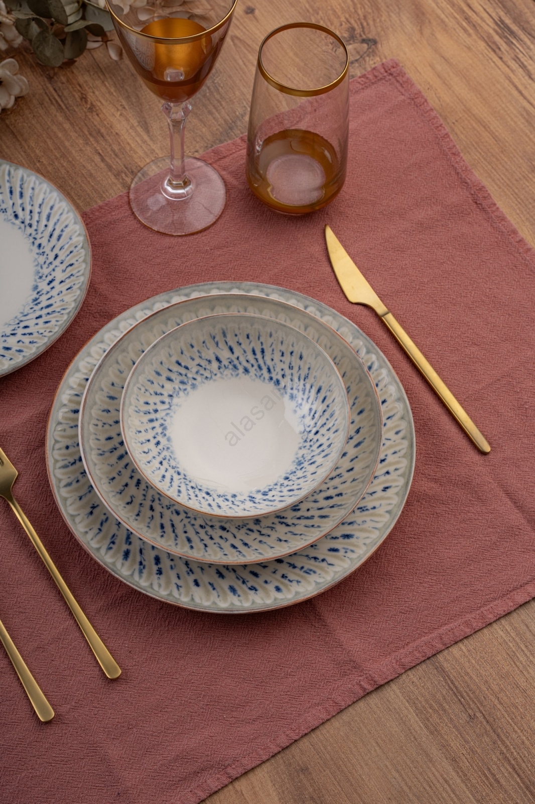 24-osainen ruokailusarja, sininen/beige/posliini | Alasans