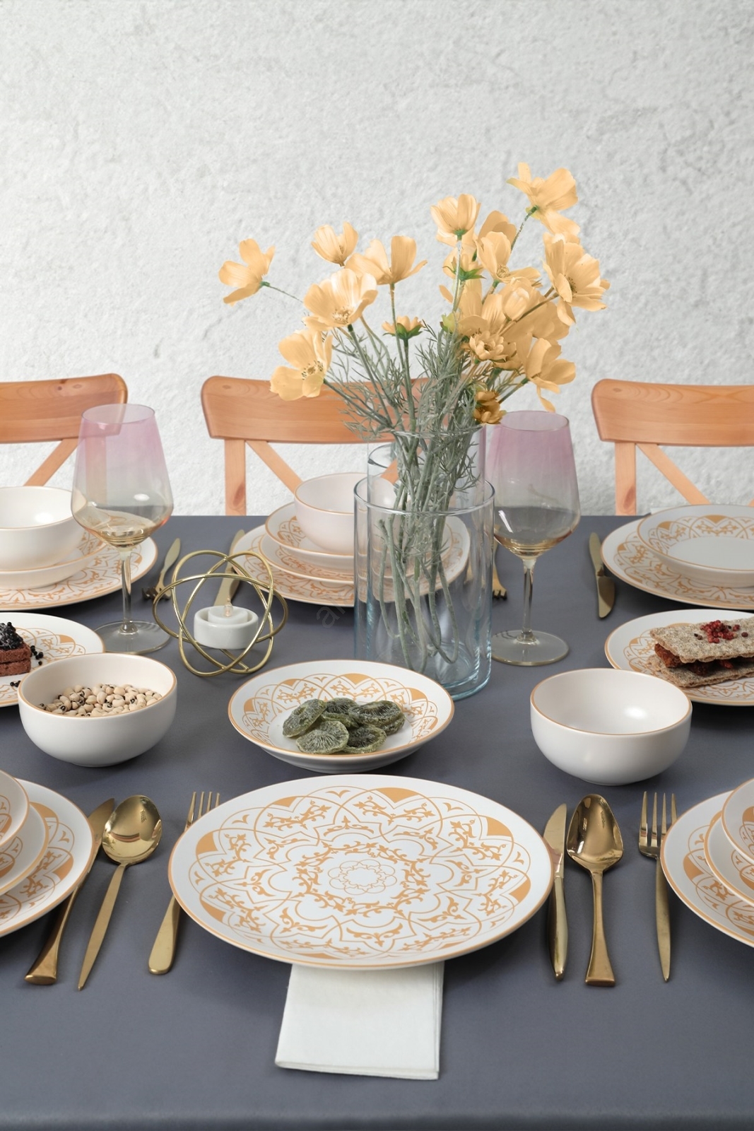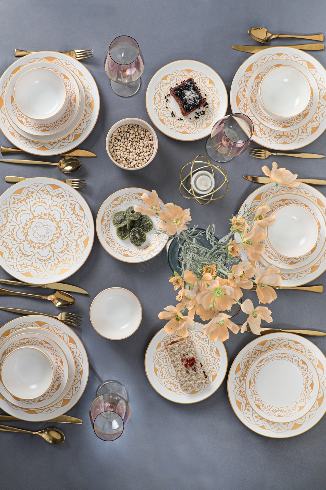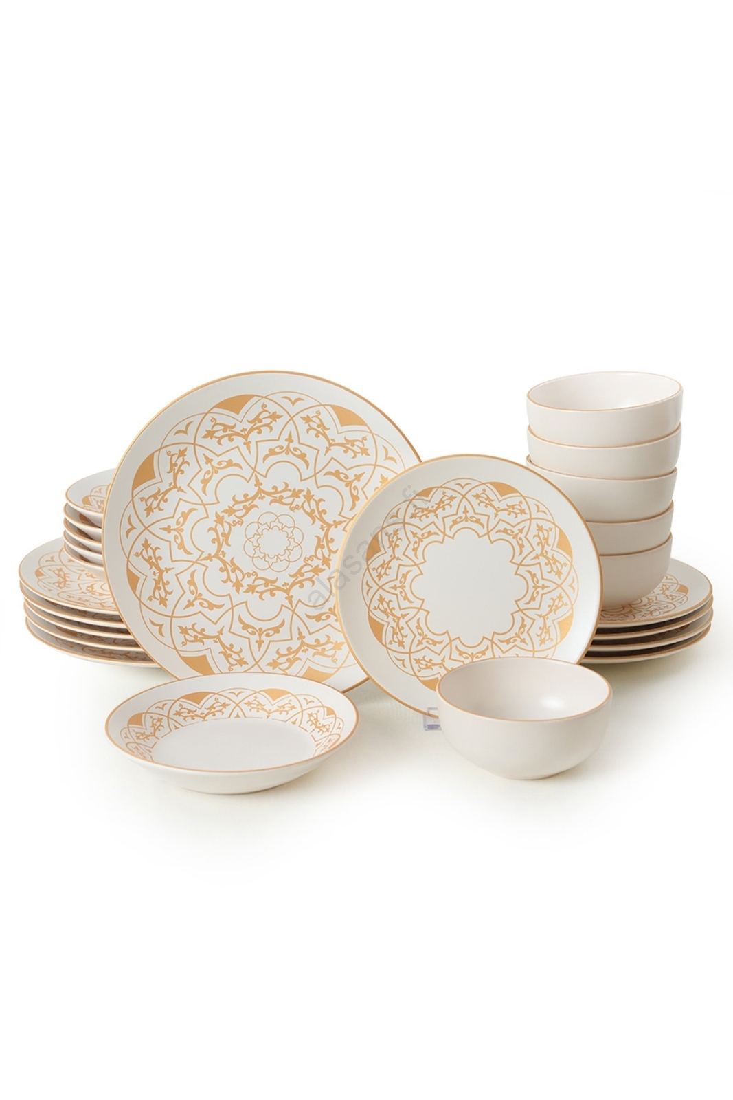 24-osainen ruokailusarja, valkoinen/kultainen/keramiikka | Alasans