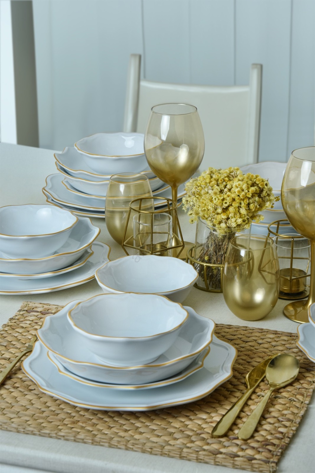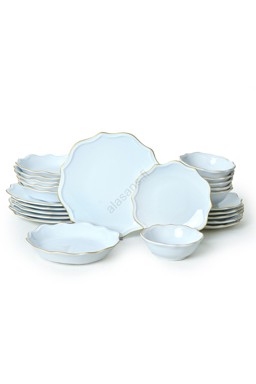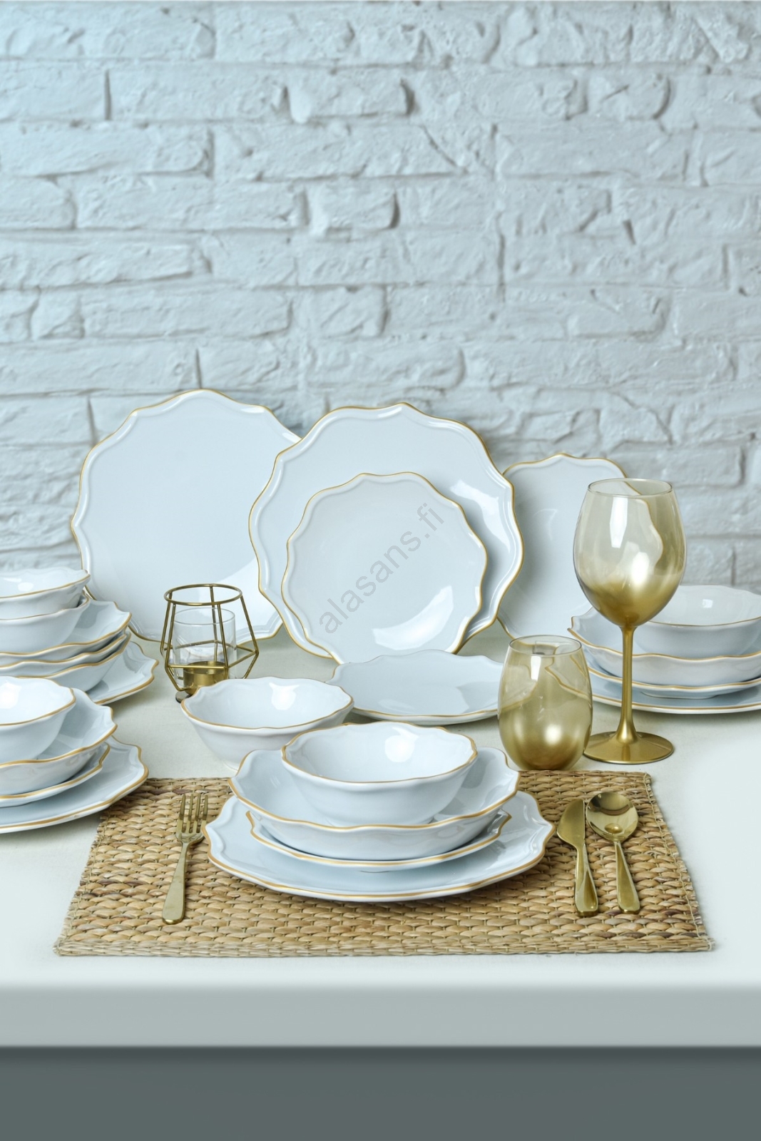 24-osainen ruokailusarja, valkoinen/kultainen/kivitavara | Alasans