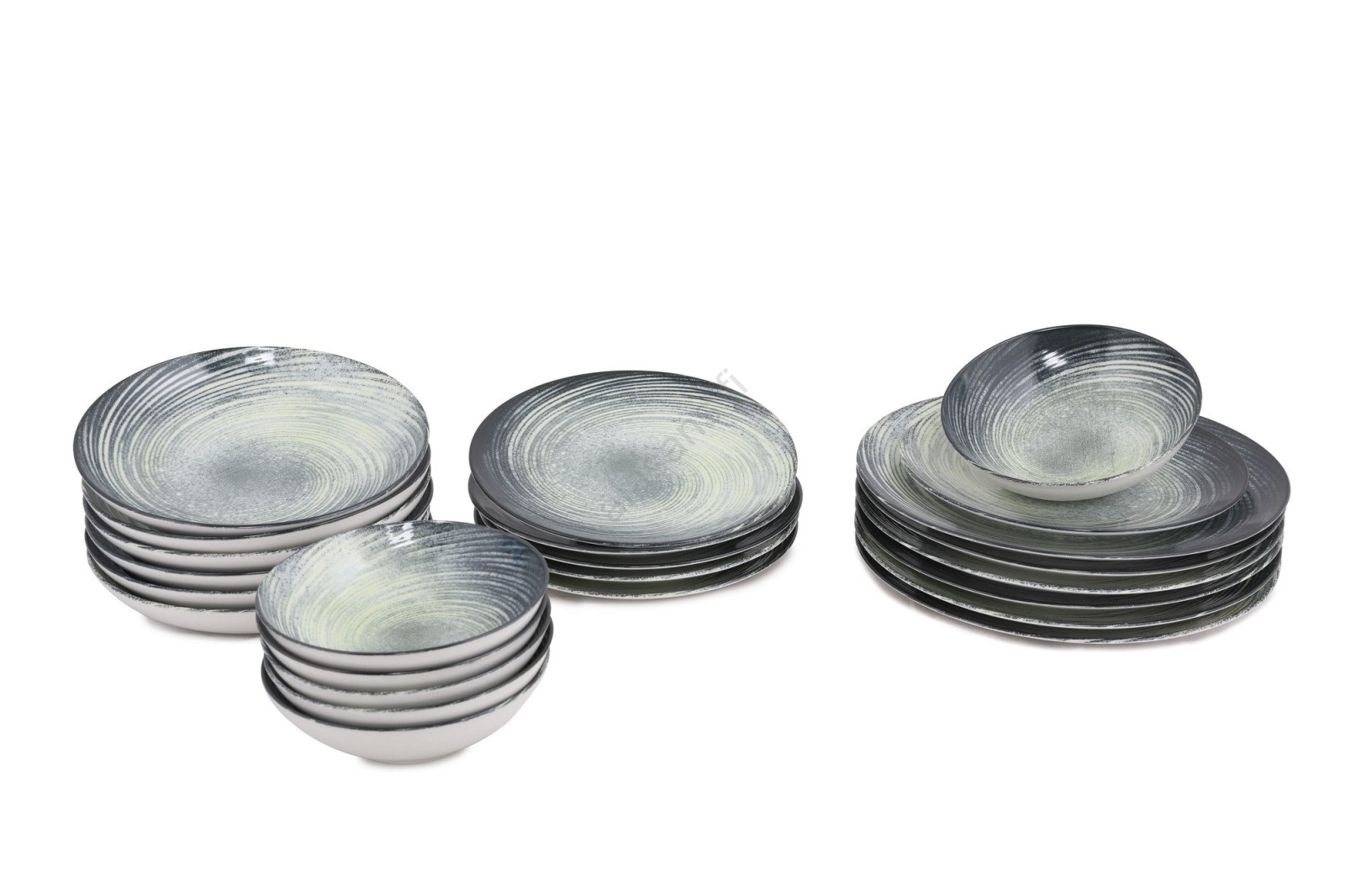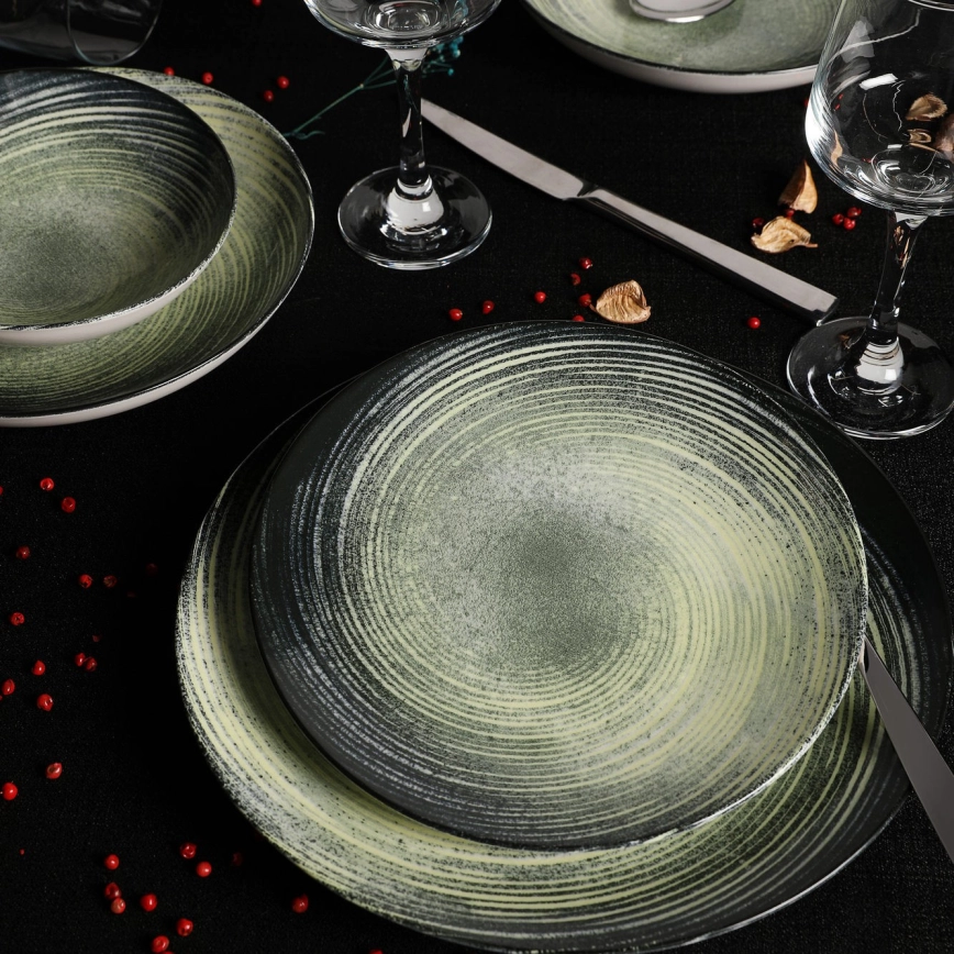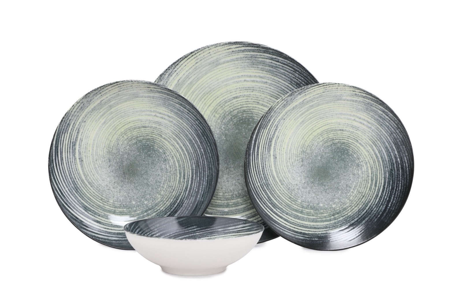 24-osainen ruokailusarja, vihreä/musta, posliini