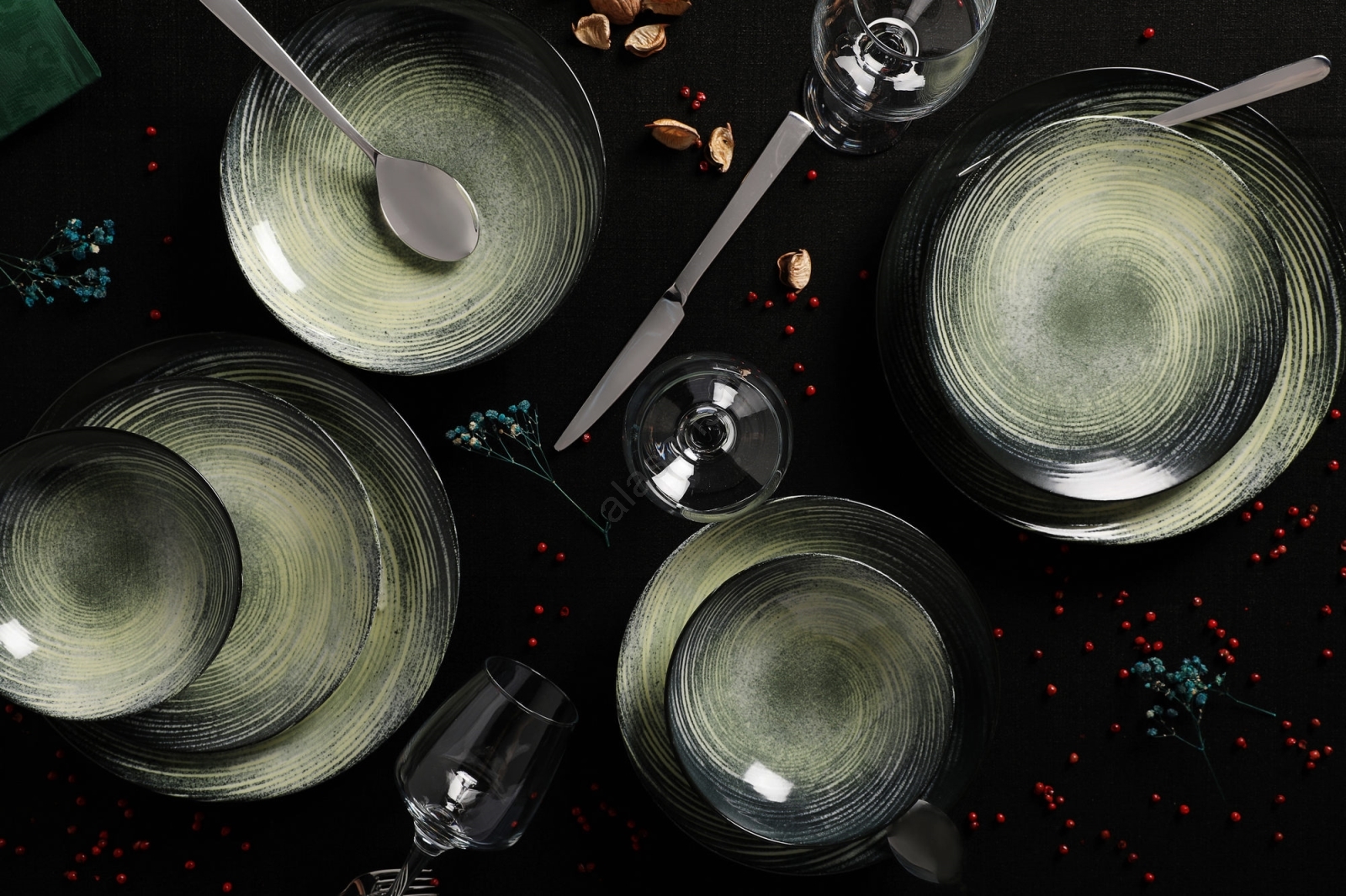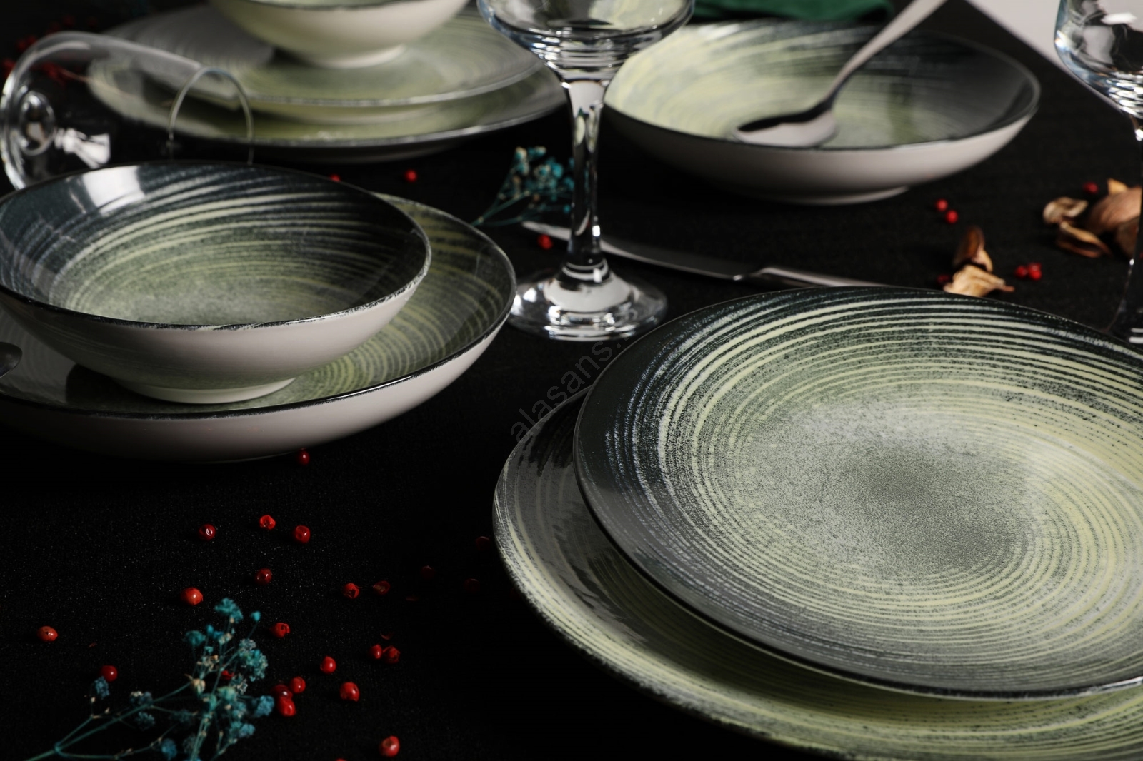 24-osainen ruokailusarja, vihreä/musta, posliini | Alasans