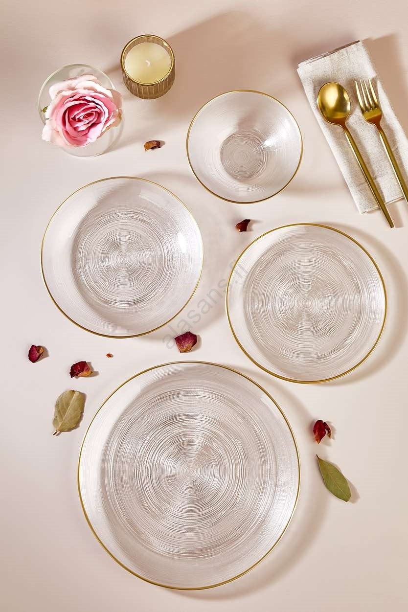 24-osainen ruokailusetti kirkas/kultainen/lasinen | Alasans