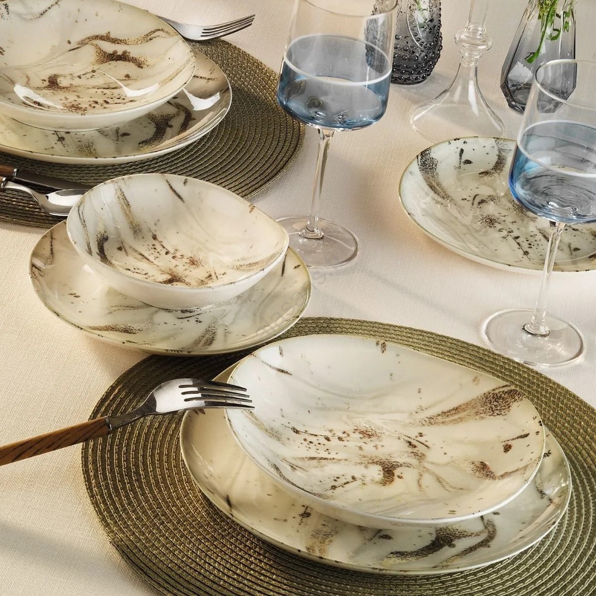 24-osainen ruokailusetti ruskea/posliini | Alasans