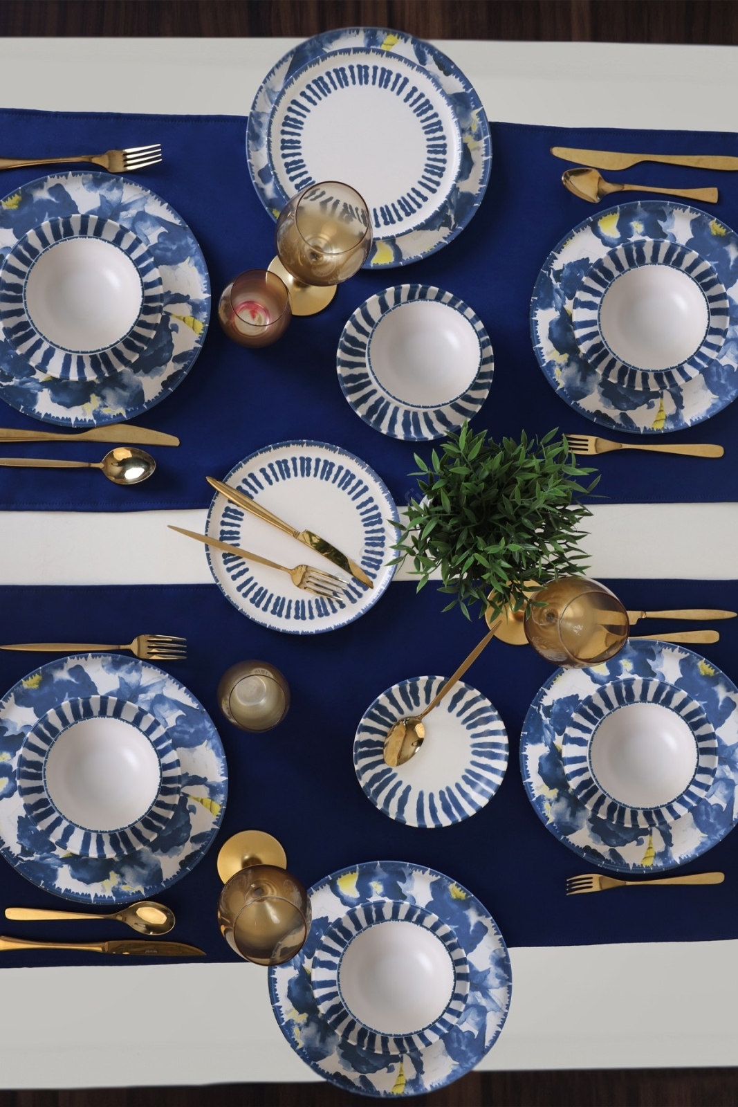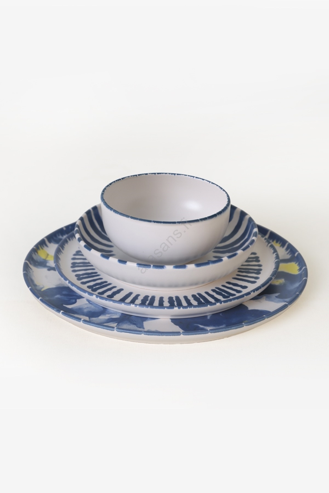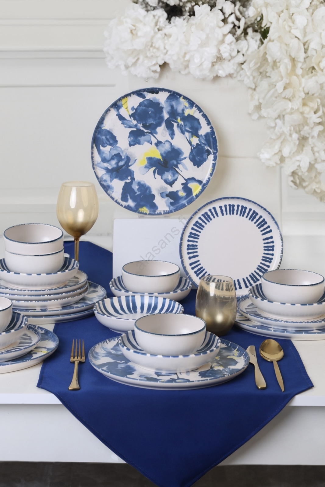 24-osainen ruokailusetti valkoinen/sininen/keraaminen | Alasans