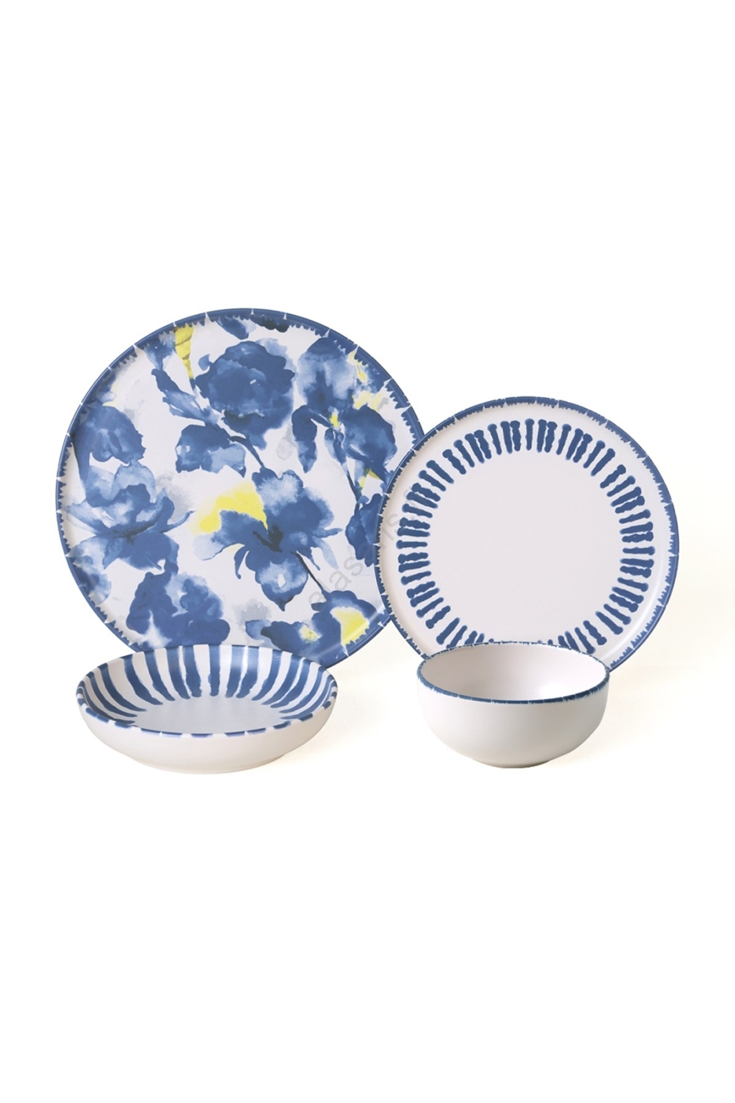 24-osainen ruokailusetti valkoinen/sininen/keraaminen