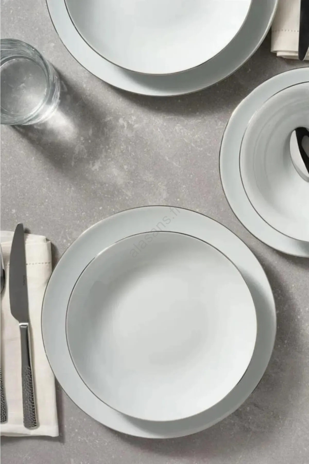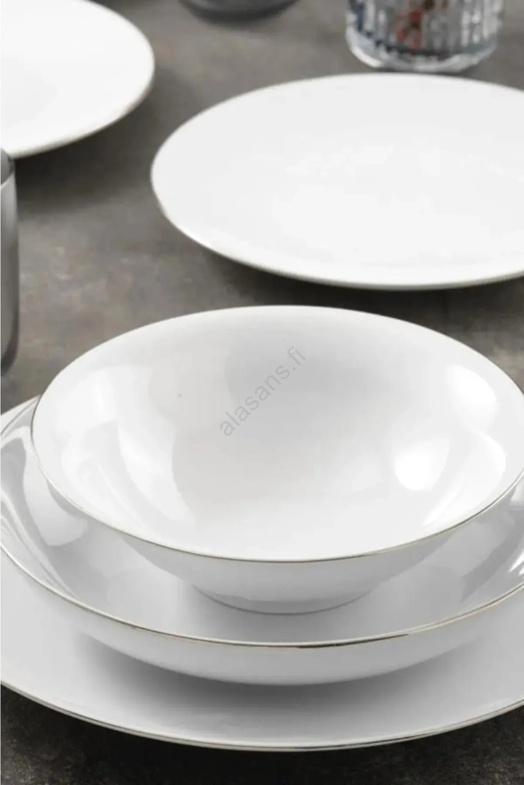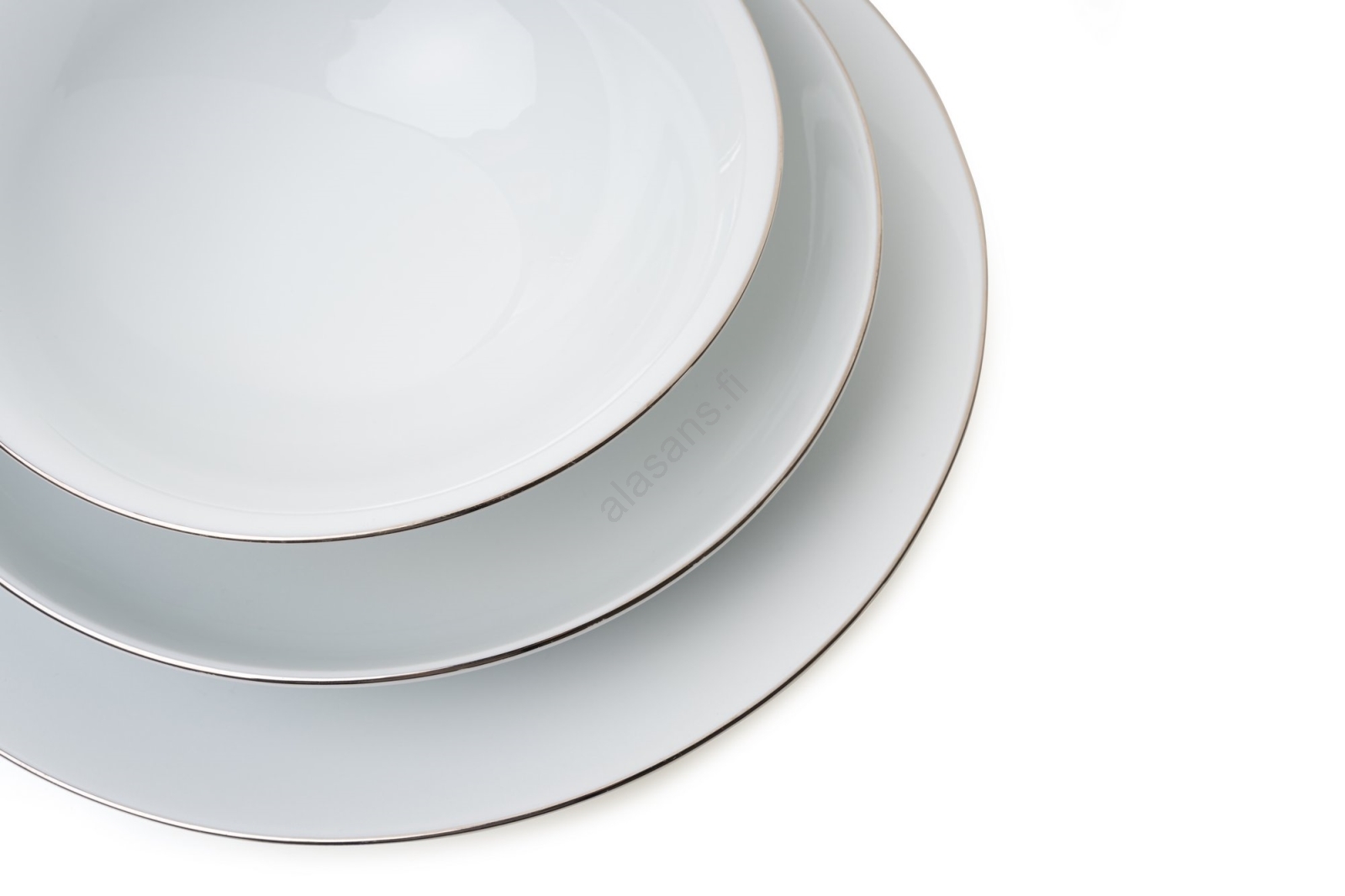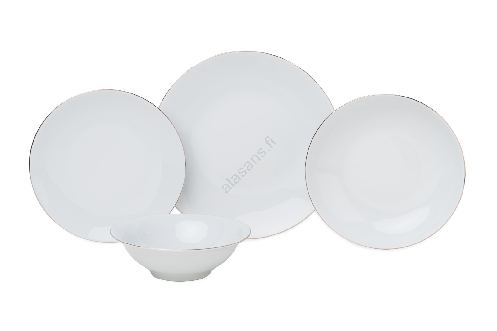 8-osainen ruokailusarja, valkoinen/hopea/posliini | Alasans