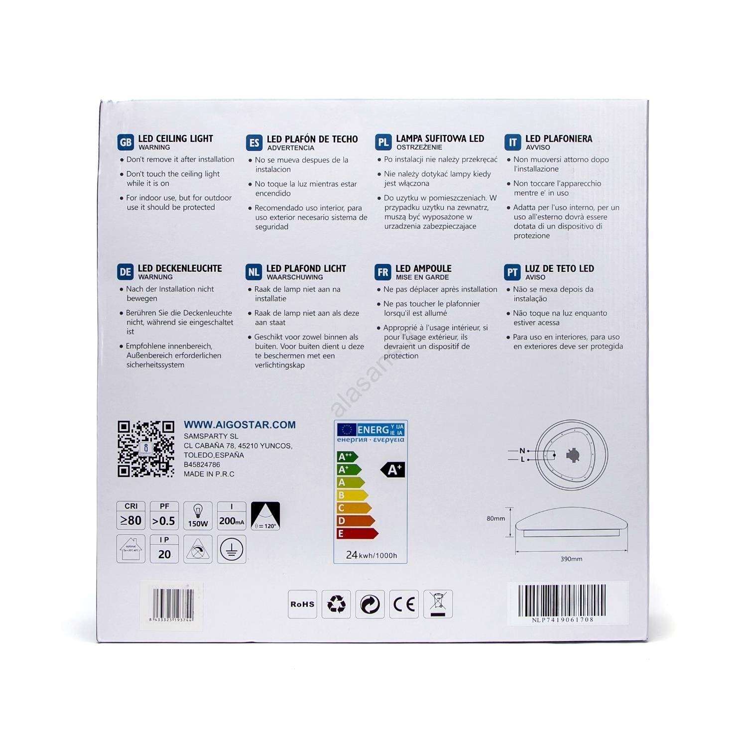 Aigostar - LED-kattovalaisin anturilla LED/24W/230V 3000K | Alasans