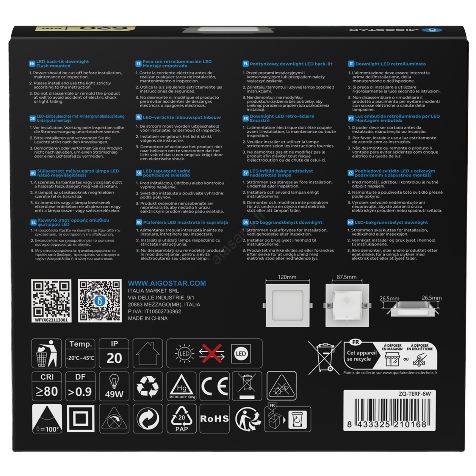 Aigostar - LED-upotettava alasvalo LED/6W/230V 4000K 12x12 cm valkoinen | Alasans
