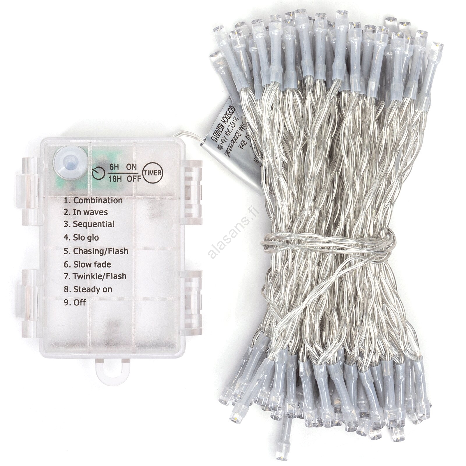 Aigostar LED ulkokoristevalosarja 100 LED, 8 toimintoa, 3xAA, 10,3m, IP44 | Alasans