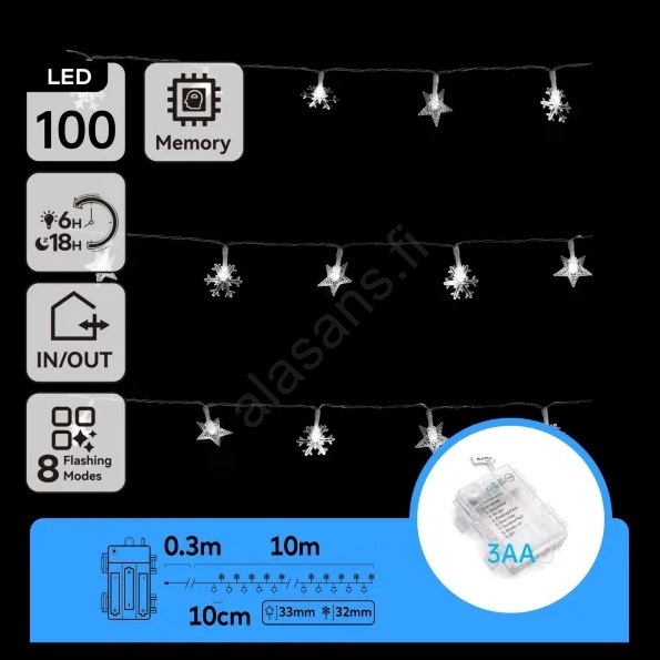 Aigostar - LED-ulkojouluvaloketju 100xLED/8 toimintoa 3xAA 10m IP44 kylmänvalkoinen | Alasans