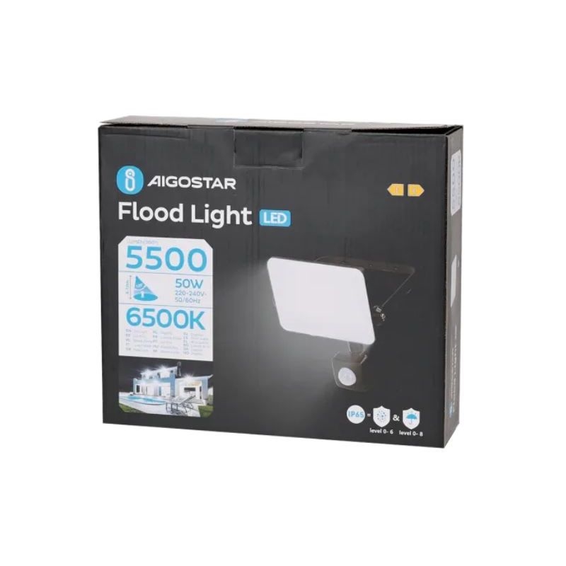 Aigostar - LED-valonheitin anturilla LED/50W/230V 6500K IP65 musta | Alasans
