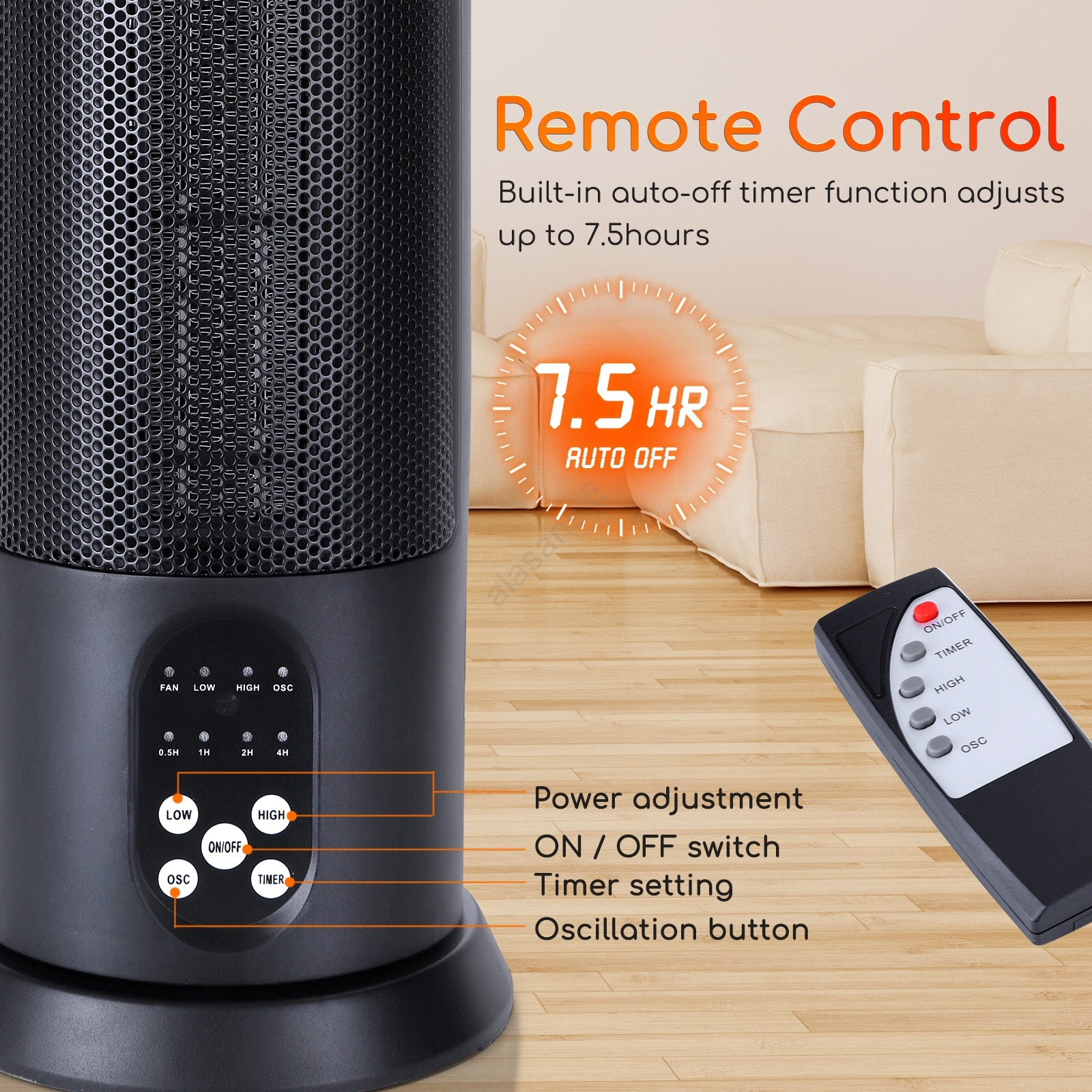 Aigostar - Sähkölämmitin 1500W/230V + kaukosäädin | Alasans