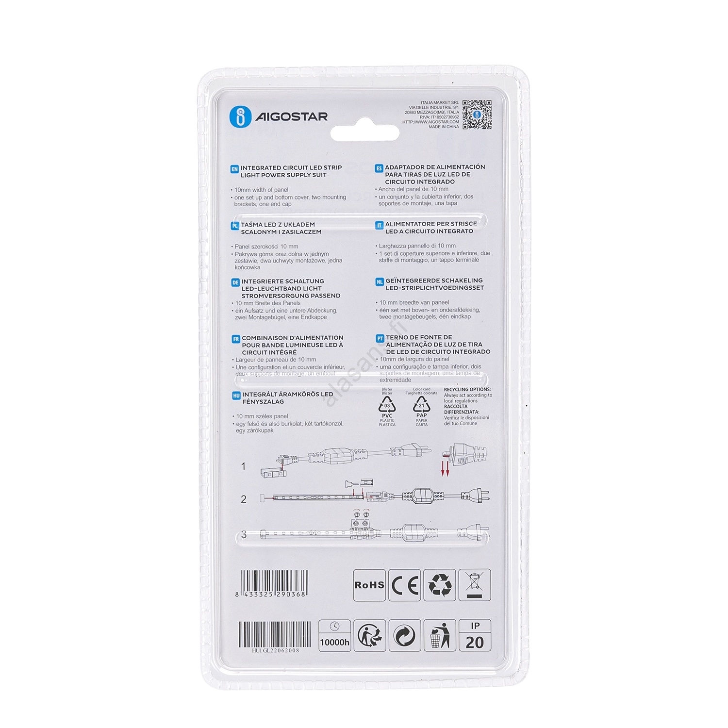 Aigostar - Virtalähde LED-nauhoille 10 mm 600W/230V valkoinen | Alasans