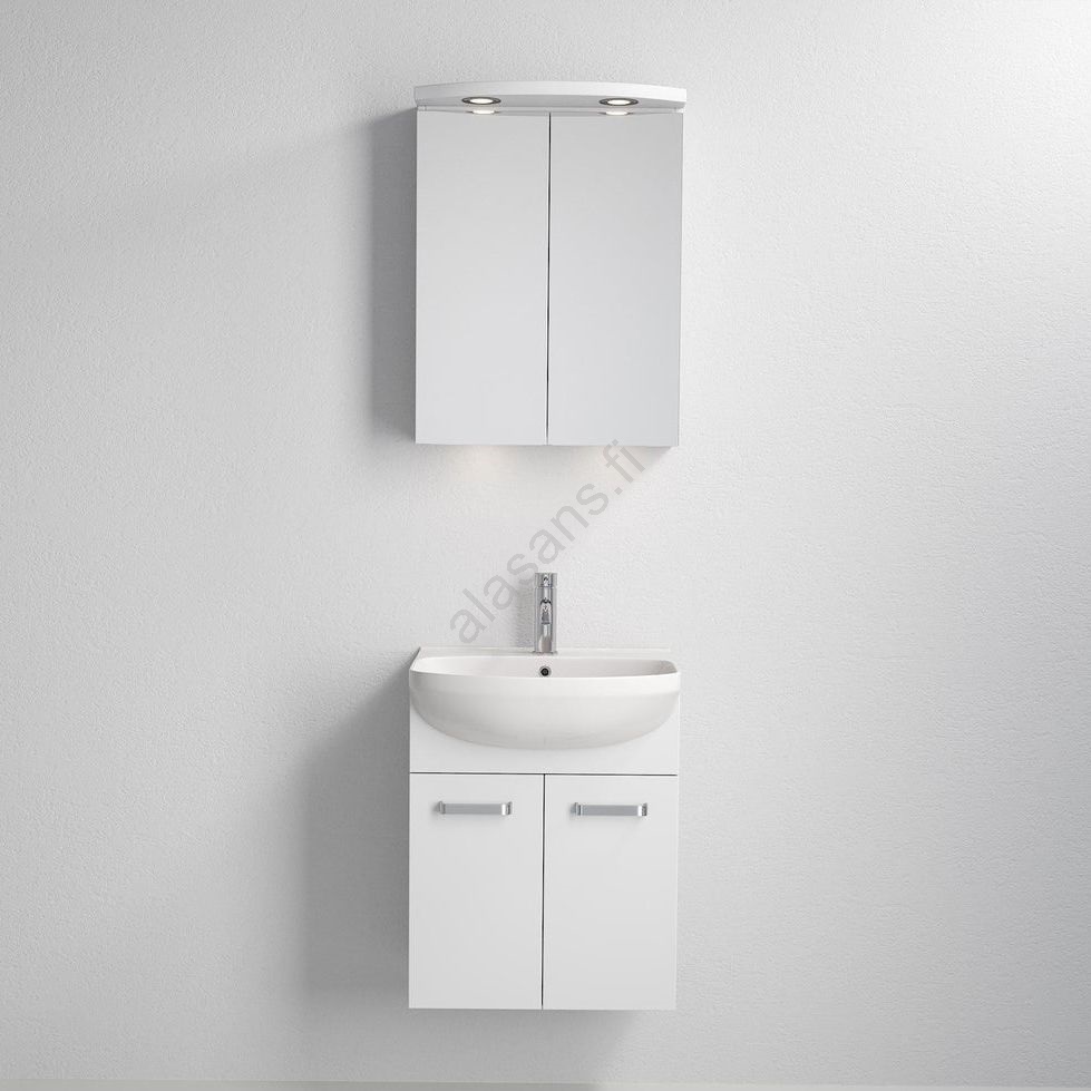 Kylpyhuonekaappi pesualtaalla ASTRID + LED-peilikaappi 230 V IP44 valkoinen | Alasans