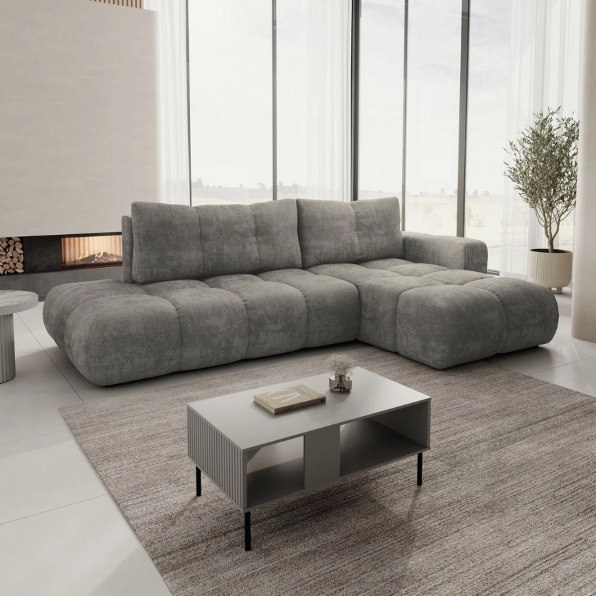 • Avattava verhoiltu L-muotoinen kulmasohva ALMADA, oikeakätinen, harmaa, säilytystilalla