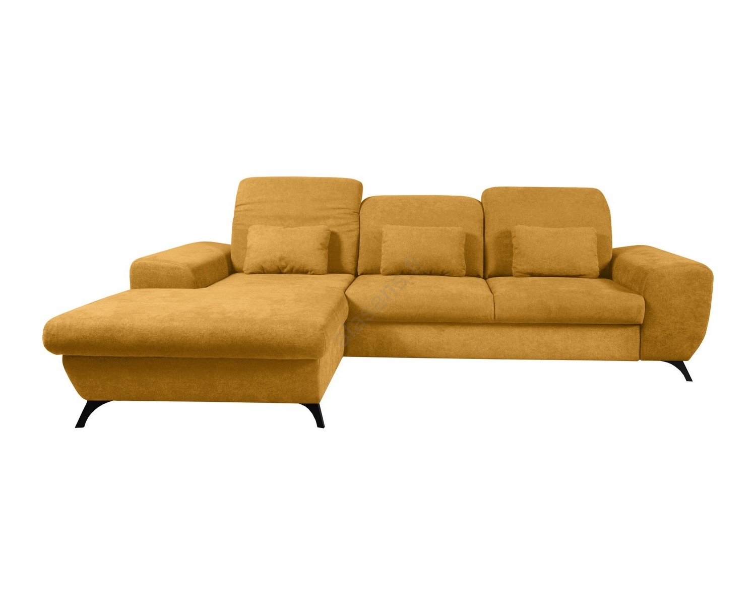 • Vuoteeksi avattava, verhoiltu L-muotoinen ALTA-kulmasohva, vasen, sisäänrakennetulla säilytystilalla, keltainen