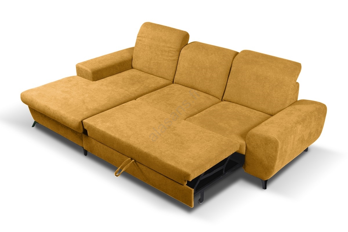 ALTA L-mallinen avattava verhoiltu kulmasohva, vasen, säilytystilalla, keltainen | Alasans