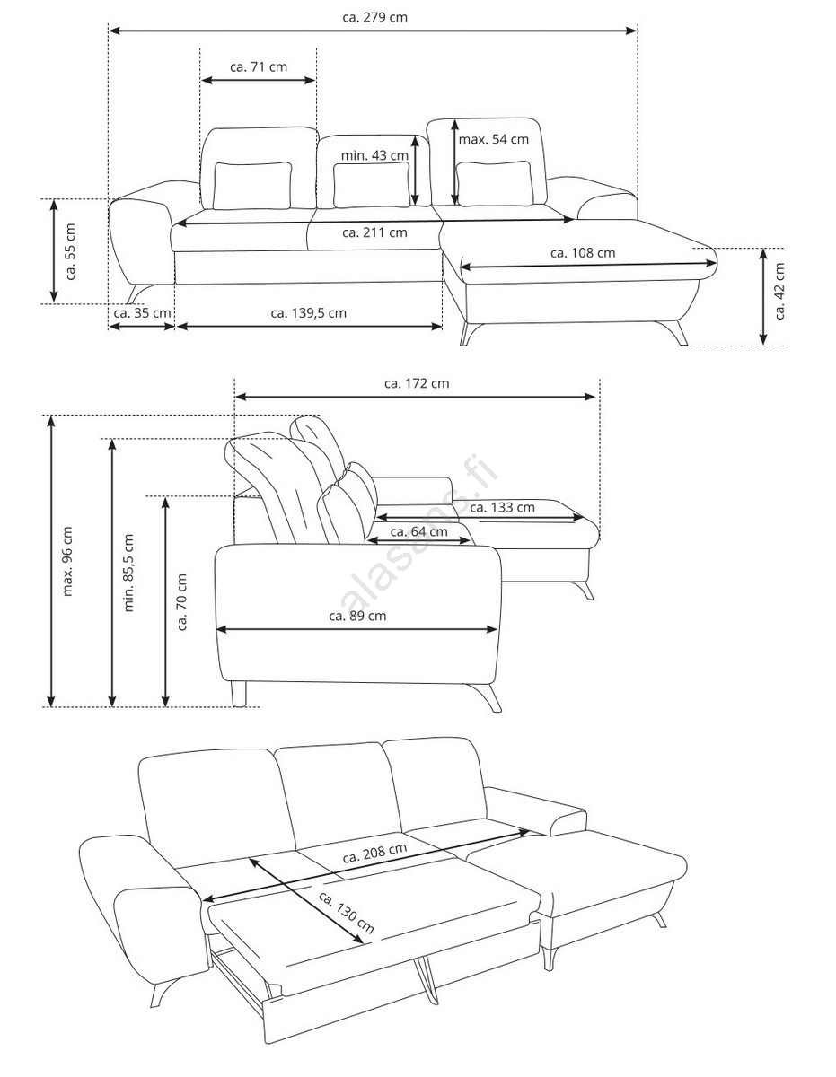 • Sohvassa on tilava säilytystila vuodevaatteille ja muille kausitavaroille.