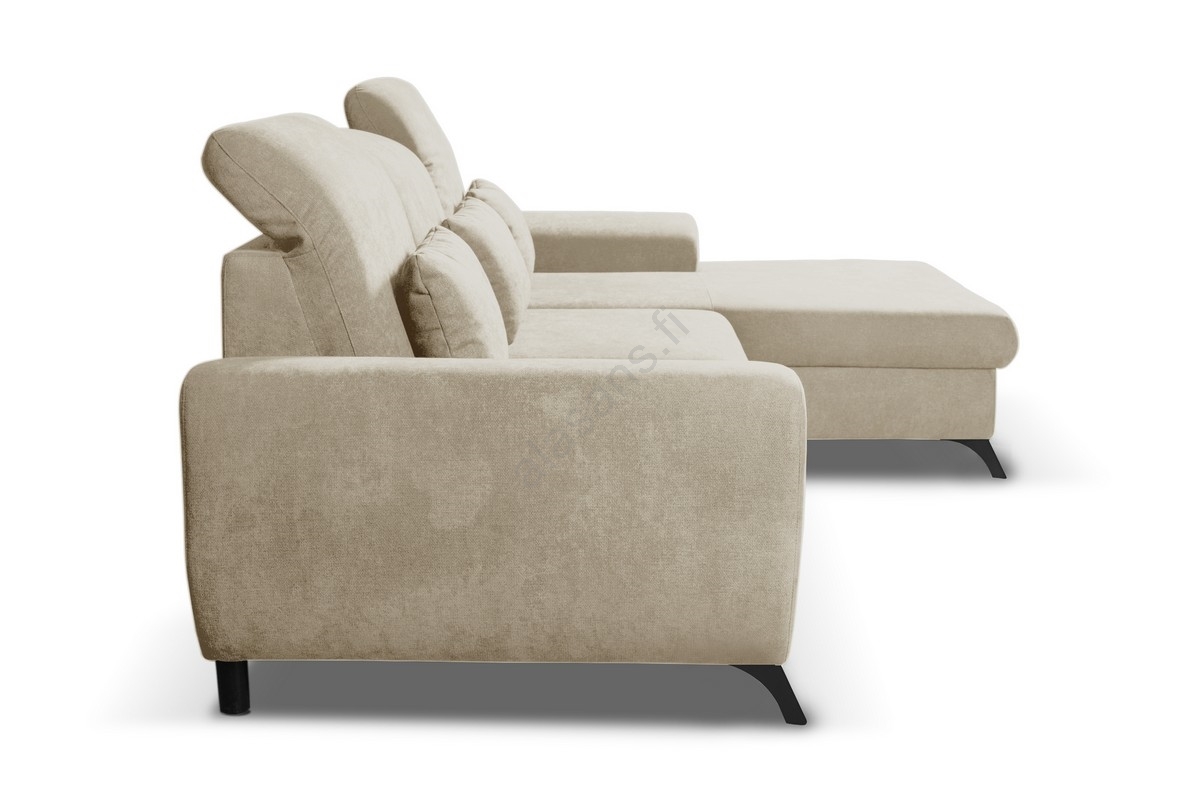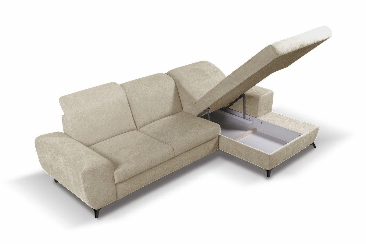 ALTA L-mallinen oikeakätinen verhoiltu avattava kulmasohva säilytystilalla, beige