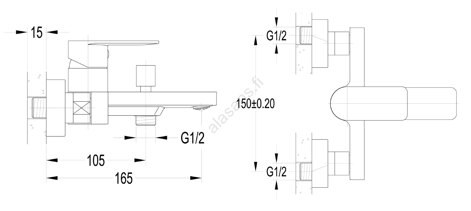 • Asennus on seinään asennettava ja sitä ohjataan vivulla.