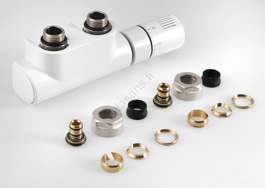 Aqualine - Termostaattinen venttiilien liitossetti keskiliitäntään, valkoinen | Alasans