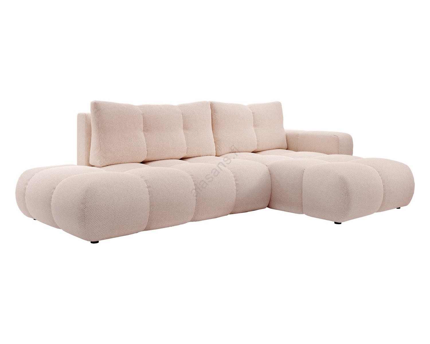 • ALMADA L-muotoinen verhoiltu vuodesohva säilytystilalla, oikeanpuoleinen, beige