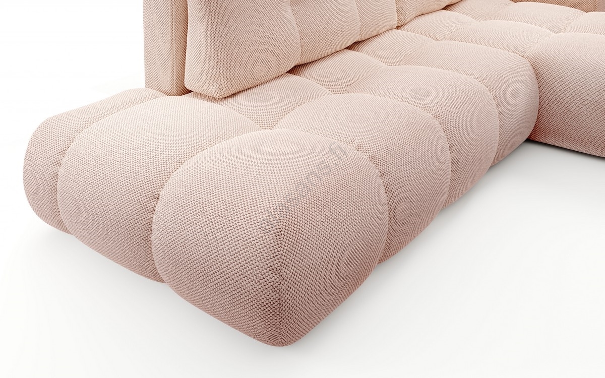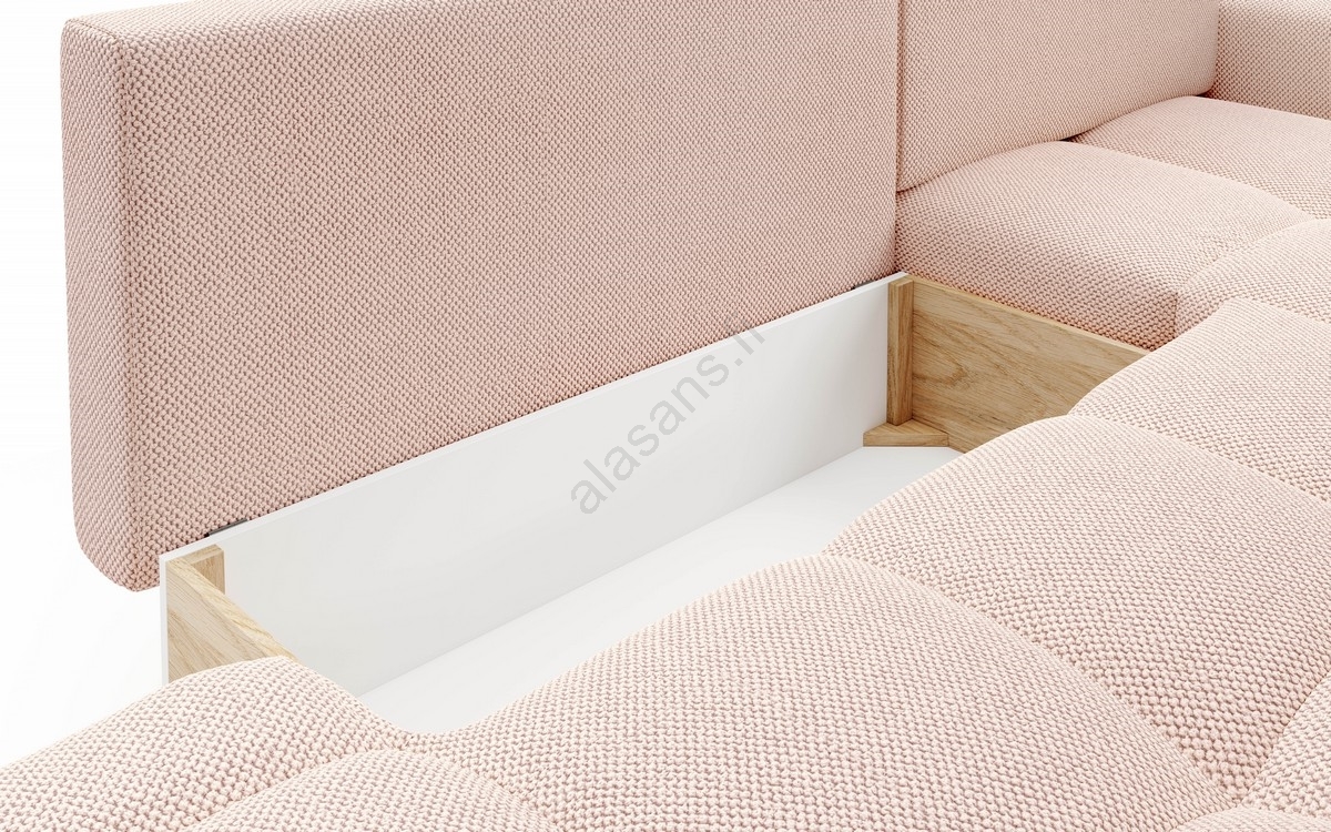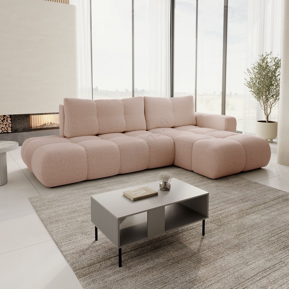• ALMADA oikeanpuoleinen L-muotoinen avattava verhoiltu kulmasohva säilytystilalla, vaaleanpunainen