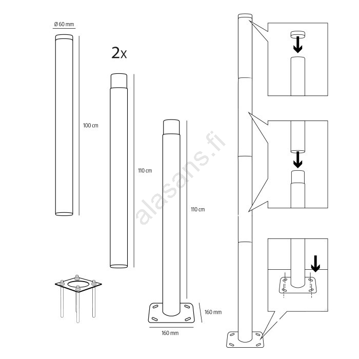 Metallinen pylväs ulkovalaistukseen BASE, 4 m, Ø 60 mm, musta | Alasans