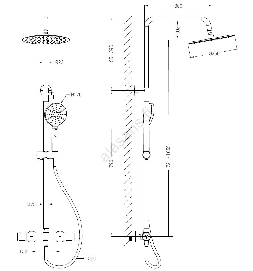 BATH DELUXE 31-120-05-02-00 - Suihkusetti termostaattiventtiilillä DRAGOR mattam | Alasans