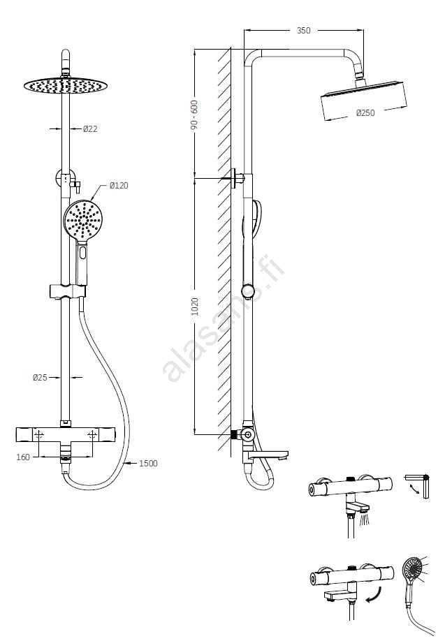 • Setti koostuu massiivisesta messinkisestä termostaattisesta hanasta.