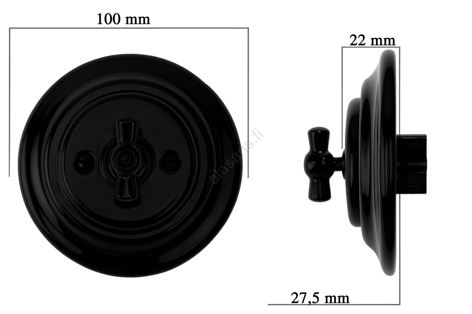 Bohemia-Design - Posliininen retro-tyylinen pyörivä himmennin kehyksellä 250V/10A musta | Alasans