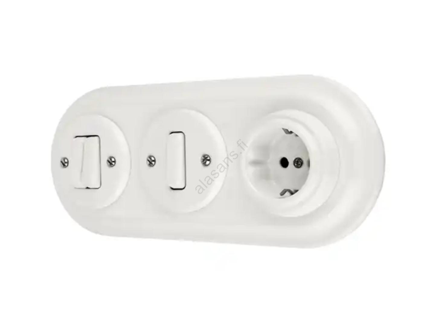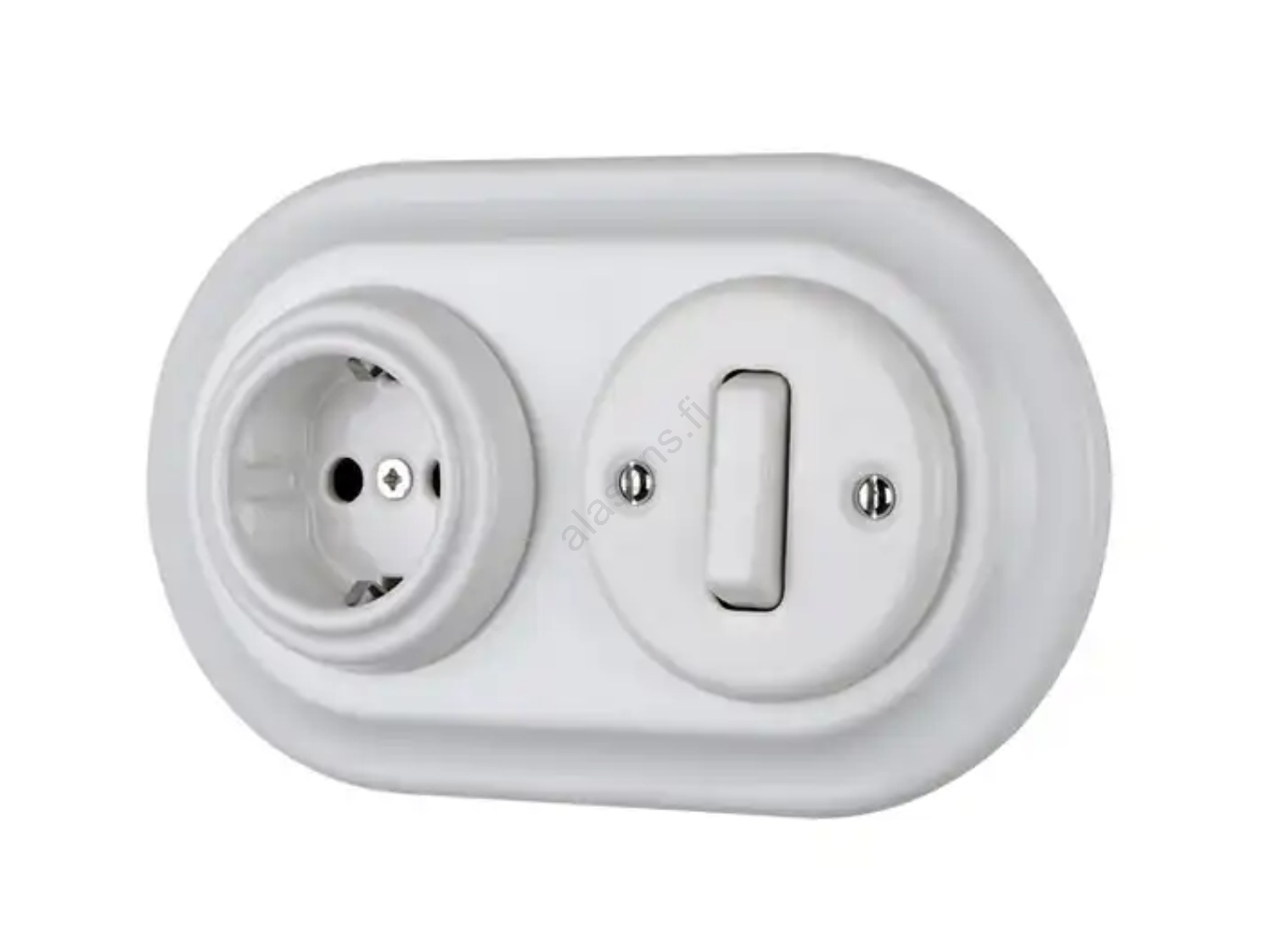 Bohemia-Design - Posliininen retro-pistorasia kotikäyttöön, ilman kehystä, 250 V/16 A, valkoinen | A