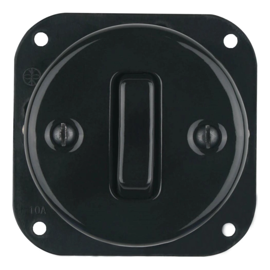 Bohemia-Design - Posliininen retro yksinapainen kehyksetön kytkin nro 1 musta | Alasans