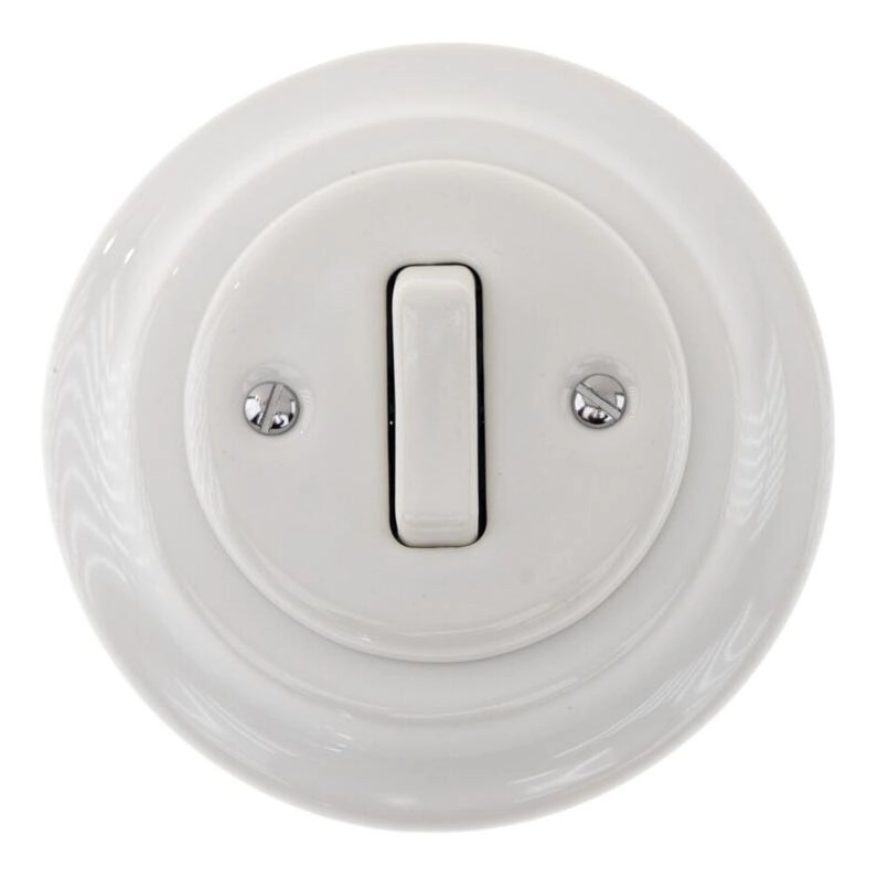 Bohemia-Design - posliininen retrotyylinen yhden napin valokytkin, kehys nro 6, valkoinen | Alasans