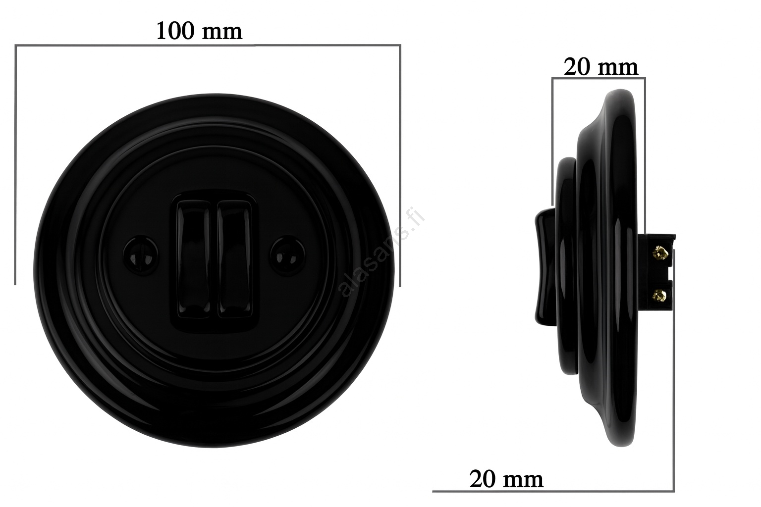 Bohemia-Design - Posliininen retro-kaksoiskytkin, kehys nro 5, musta | Alasans