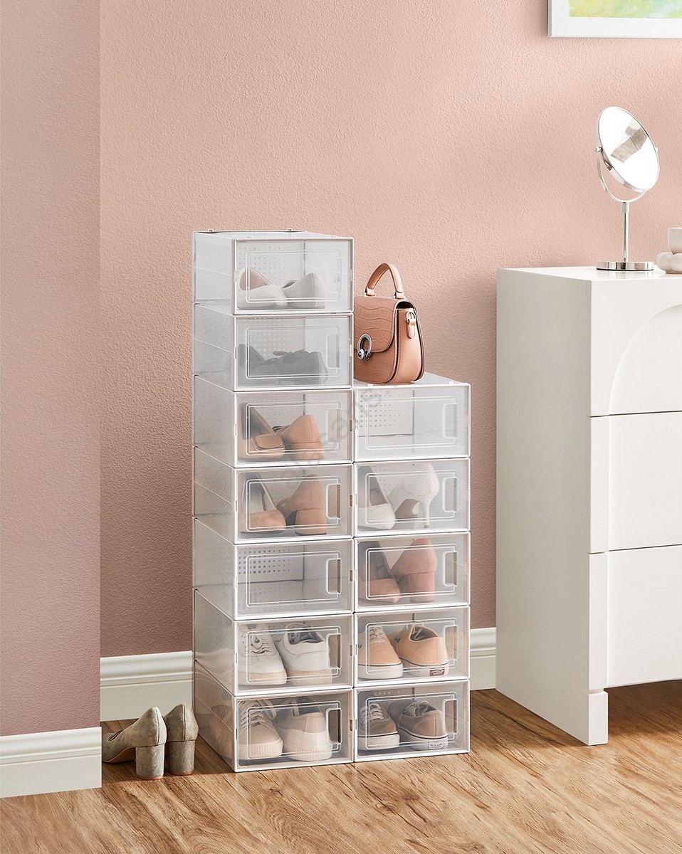 • Jokainen tämän kenkähyllyn osa on valmistettu korkealaatuisista liitososista, muovilevyistä ja tukevasta teräslangasta, ja se kantaa jopa 5 kg.