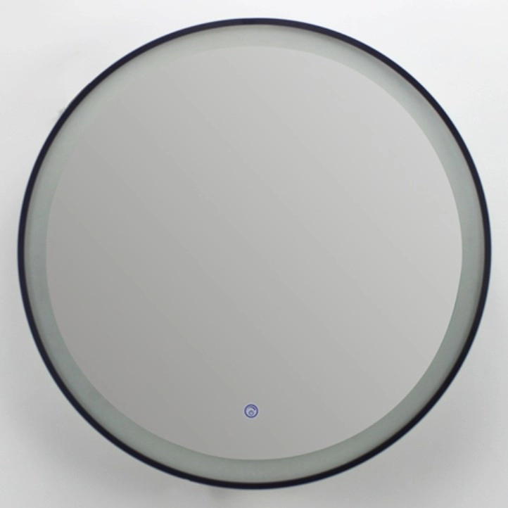 • Kylpyhuoneen peili, jossa on musta kehys.