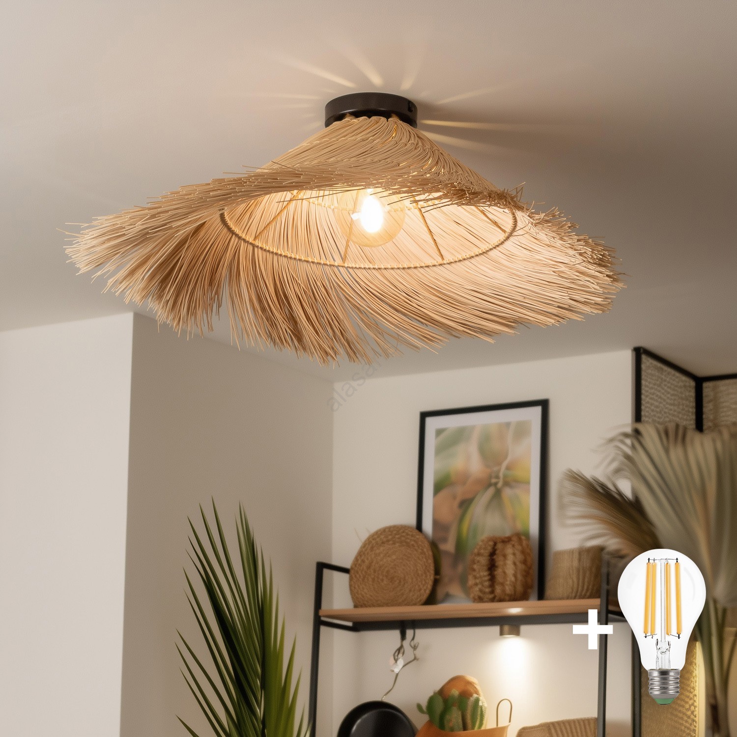 Brilagi - LED-pintakiinnitteinen kattokruunu CERIA BOHO 1xE27/40W/230V, halkaisija 100 cm, rottinki